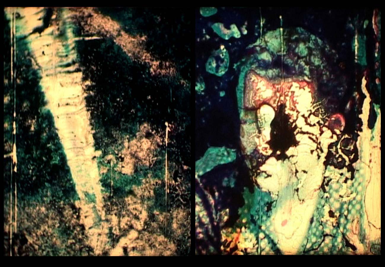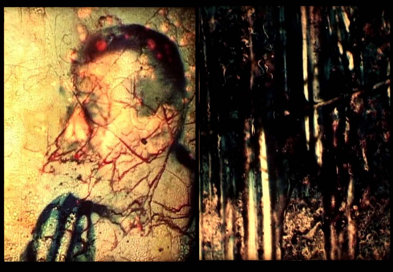 Nach und nach wird das Filmmaterial brüchig, es bekommt Kratzer, die sich wie Adern durch die Bilder ziehen, es verfärbt sich und löst sich schließlich auf. Mit der Dauer des Films steigert sich der Grad seiner Zerstörung. Bald sind die Kaffeekränzchen und Ausflüge der unbekannten Familie, die sie in den Homemovies für sich und ihre Nachkommen dokumentierte, nicht mehr als solche zu erkennen. Wie die Erinnerung an diese Ereignisse verblasst auch das Material, auf das sie gebannt wurden. Mit der eindeutigen Erkennbarkeit der Bilder geht auch deren Trivialität verloren. Durch die chemische Bearbeitung erhalten die Homemovies die Qualität von Gemälden, die Unmittelbarkeit ihrer alltäglichen Themen ist einer Bedrohung durch die Vergänglichkeit gewichen. Der Film beginnt zu stocken, die Bilder erinnern an Fresken oder abstrakte Malerei. Gegen Ende werden die erkennbaren Szenarios immer ernster, Kirche und Krankenhaus lassen an ein letztes Abendmahl denken. Immer wieder blitzen aus dem zerstörten Filmmaterial Gesichter hervor, als wollten sie sich der unaufhaltbaren Auslöschung widersetzen.