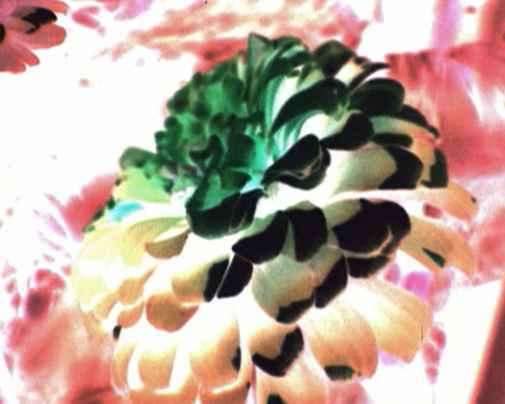 Optisch radikal umgewandelte und zusammengepresste Konstruktion der naturalistischen 16mm Stummfilme "Blumen", "Klee", "Okay" und "12:00" (2004). Zum durchgehenden EC-Zuggeräusch sieht man Blumen, zuckenden Klee, eine aufblitzende Detailorgie vieler Gegenstände in Detailaufnahmen und eine Serie Mittagessen.