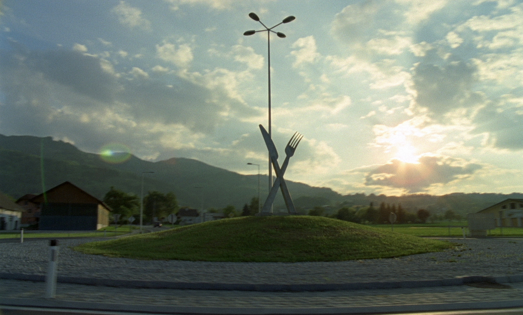 ´Roundabouts´ heißen sie im Englischen, doch nicht um das Rundherum dreht es sich in diesem originellen Fünfminüter, sondern um das Mittendrin. Lurf montiert von einer Vespa aus aufgenommene Fahrten um Kreisverkehre im südlichen Wiener Umland, wobei die Kamera strikt auf das jeweilige ´Zentrum´ gerichtet bleibt, sohin die Gestaltung der verkehrstechnischen Leerstelle in den Blick nimmt: Zunächst schlichte Rasenfläche, dann Strauch, Bäumchen und Gartendekor, erhebt sich der Ampelersatz bei Lurf rhythmisch zum Felsbrocken, zur Reklametafel, zum Brunnen, und schließlich zum bizarren Kunstwerk.