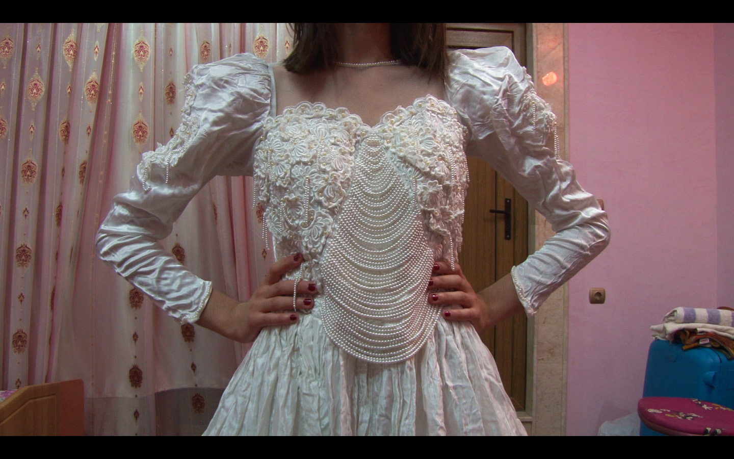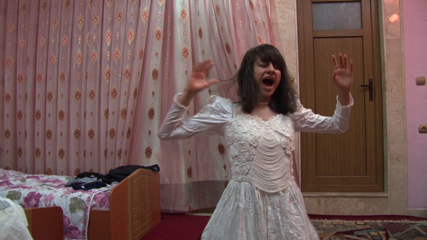 Ein langer Vorhang bewegt sich im Wind, eine Tür, ein schlichtes Bett, mittendrin die zierliche Performerin in einem viel zu großen orientalischen Brautkleid. Allein gelassen in einem Raum, der an ein Hotelzimmer erinnert, singt und tanzt sie sich aberwitzig die Seele aus dem Leib. In realita befindet sie sich im Haus von Verwandten im Irak, in dem die Künstlerin drei Wochen festgesessen ist. Unproportional wie das ausladende Brautkleid, – so ist auch die voluminöse, tiefe Stimme Lorraine Ellisons ein ironischer Kontrast zum zierlichen, mädchenhaften Körper von Kurdwin Ayub.