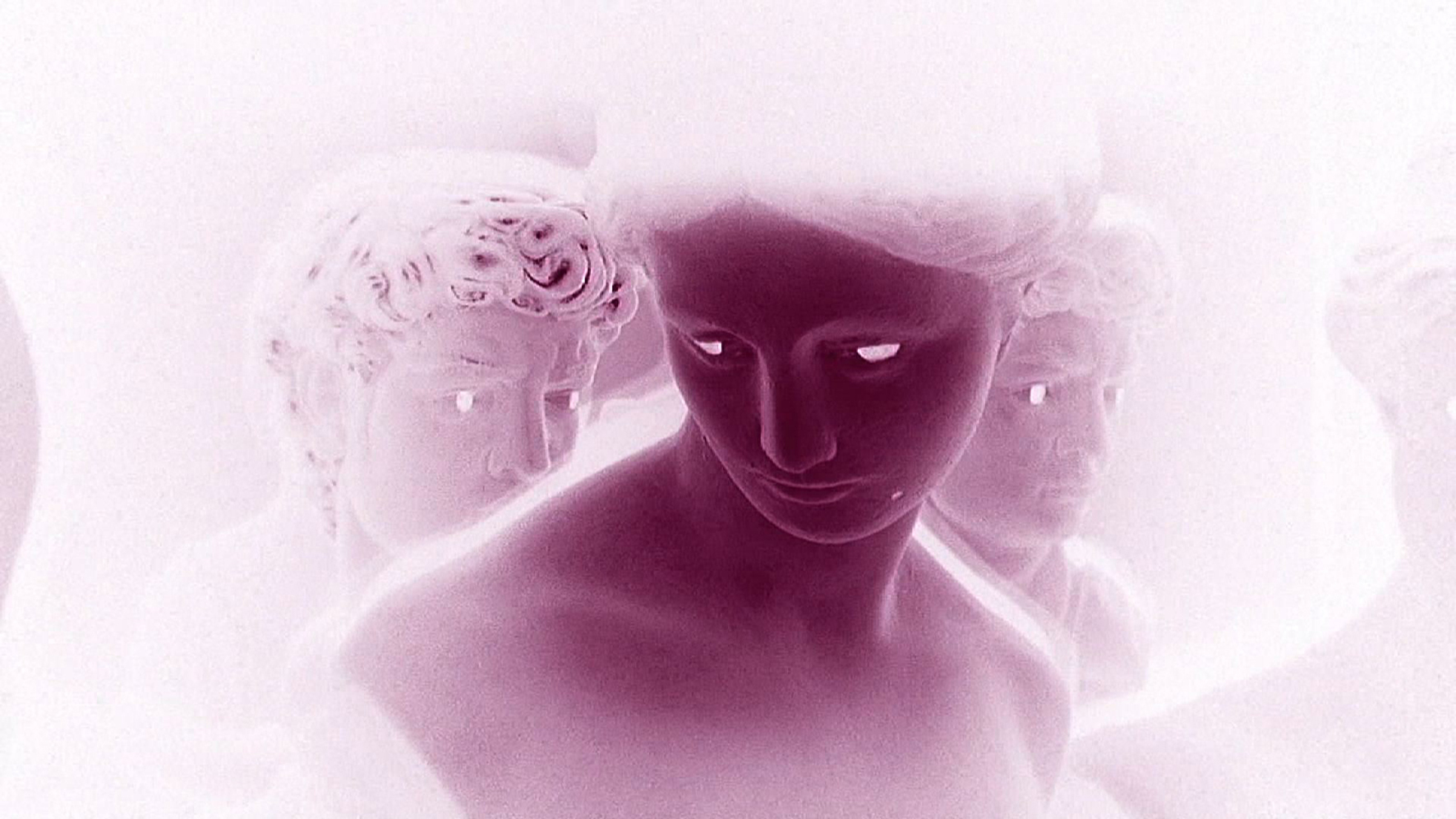 2006 bemalte ich zahlreich typisch römisch-antike Kitschbüsten, die ich 2010, mit einer Infrarot-Kamera, fragementarisiert zerfilmte.