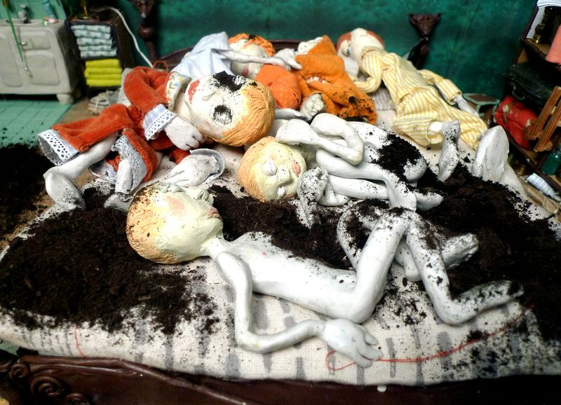 Als Inspirationsquelle nennt die Künstlerin das im naturhistorischen Museum ausgestellte Grab einer siebenköpfigen Familie aus der Hallstattzeit, deren Körperhaltung vermuten lässt, dass die Personen bei lebendigem Leib begraben wurden. Im Film finden die animierten Familienmitglieder letztendlich auf einem großen Bett zusammen, rollen sich ein zum „ewigen Schlaf“ und werden mit schwarzer Erde bedeckt. Auf der Tonebene wird dieser Stimmungswechsel unterstützt, wenn die improvisierte, atonale Klavierbegleitung Frederic Broderips in „Du, oh schönes Weltgebäude“ von Johann Sebastian Bach übergeht. Wie auch in anderen Werken ihres Oeuvres offenbart Birgit Scholin bei Family Portrait also eine kompromisslose Zusammenführung aus Wahrheit, Wunsch und Erinnerung.