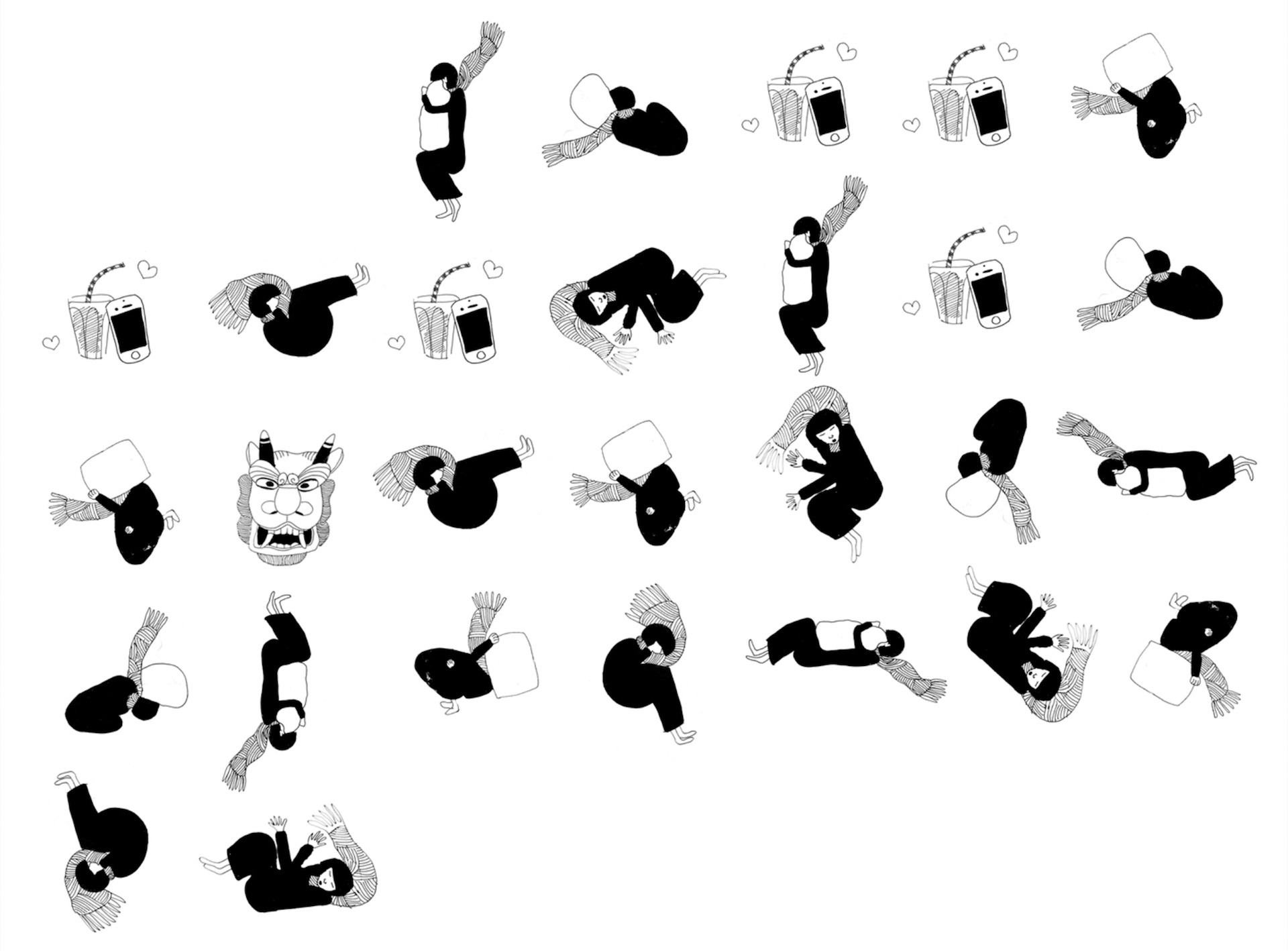Als Kapitelüberschriften fungieren 13 Tafeln mit Illustrationen, filigrane Zeichnungen in Schwarz auf Weiß, von Menschen und Dingen, in Zeilen angeordnet, wie Buchstaben oder Schriftzeichen, Tagebucheintragungen in Bildern. Ein Alphabet der Fragen und Zweifel, der Höhen und Tiefen einer Lebensphase der Filmemacherin. (Andrea Pollach)