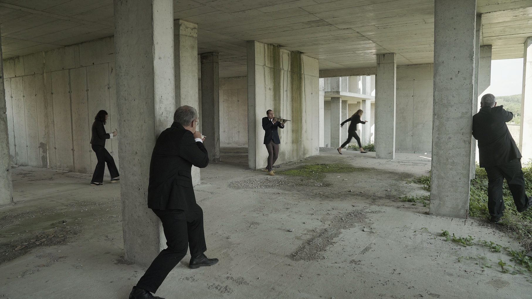 Spiele sind gemeinhin durch Übereinkünfte definiert – Regeln, in deren Rahmen bestimmte Freiheitsgrade, aber auch unumgehbare Zwänge herrschen. Viele dieser Konventionen sind nicht explizit als solche ausgewiesen, etwa mit wie viel Ernsthaftigkeit oder innerer Distanz man bei der Sache zu sein hat. Schon gar nicht legt ein Spiel fest, welche genaueren (individuellen, sozialen etc.) Eigenschaften die TeilnehmerInnen aufzuweisen haben, um mit von der Partie zu sein. Umso mehr verblüfft es, dass wir in Borjana Ventzislavovas Gesellschaftsspiele / Real Games gestandene Erwachsene in Spielzusammenhängen sehen, die wir gemeinhin als Kindereien abtun. Fünf solcher Kontexte mit bewusst deplatziert oder „fehlbesetzt“ wirkenden SpielerInnen breitet der Film in geschickter Montage aus bzw. verzahnt sie so ineinander, dass wir Zeugen einer frappierenden Verfremdung werden. Die augenzwinkernd vorgetragenen Abzählreime zu Beginn sind nur ein sanfter Vorbote auf das bierernste Abschießspiel mit Blasrohrpfeilen, das eine Gruppe soignierter Herren und Damen im Betonpfeiler-Fundament eines gewaltigen Rohbaus vollführt. Um nichts weniger doppelbödig das Räuber- und Gendarm-Spiel, dem sich ausgewachsene AnzugträgerInnen rund um ein monumentales Denkmal in Sofia hingeben. Und ebenfalls nicht von schlechten Eltern der akrobatische Gummitwist, dem drei adrett gekleidete Frauen in einem stillgelegten Schulinnenhof frönen. Gänzlich enigmatisch dagegen eine Gruppe nur mit Unterwäsche Bekleideter, die rund um eine Quarzlampenskulptur im einzigen Innenraum des Films einem seltsamen Ritual nachgehen – bis sich herausstellt, dass sie nichts (oder vielleicht etwas gänzlich) anderes als ein simples „Ringelreia“-Spiel im Sinn hatten. Die Verklärung und gleichzeitige Demaskierung, die der Film vornimmt, wirkt doppelt: zum einen als Kenntlichmachung, dass selbst bei den lockersten Aktivitäten stets eine Art Rollenspiel vorherrscht; zum anderen – vielleicht noch ernüchternder – dass dessen symbolischer Rahmen jeder auch noch so gewieften Unterwanderung standhält. Wobei Freiheit und Zwang mitunter sogar auf ein und dasselbe hinauslaufen. Nicht zuletzt darauf zielt das „Reale“, also gleichsam Uneinholbare dieser entlarvenden und zugleich höchst rätselhaften Spiele. (Christian Höller)
