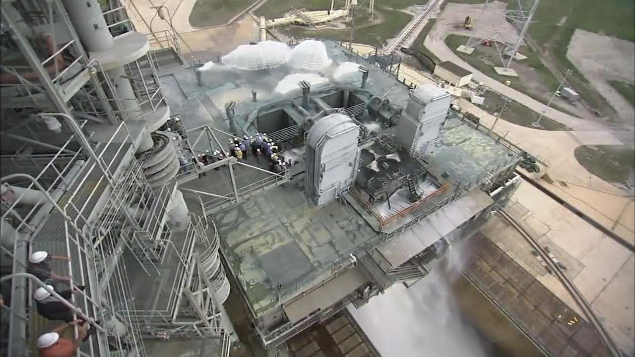 Das einminütige Fundstück von der NASA dokumentiert den Test des Schall-Unterdrückungs-Systems, das dazu dient beim Start des Space Shuttles die akustische Energie zu reduzieren, um Schäden an der Raumfähre zu vermeiden. Die Miniatur zeigt eine präzise Dramaturgie an Abläufen und Schnitten, während eine Gruppe Menschen das Abfließen des Wassers bestaunt. (JL)