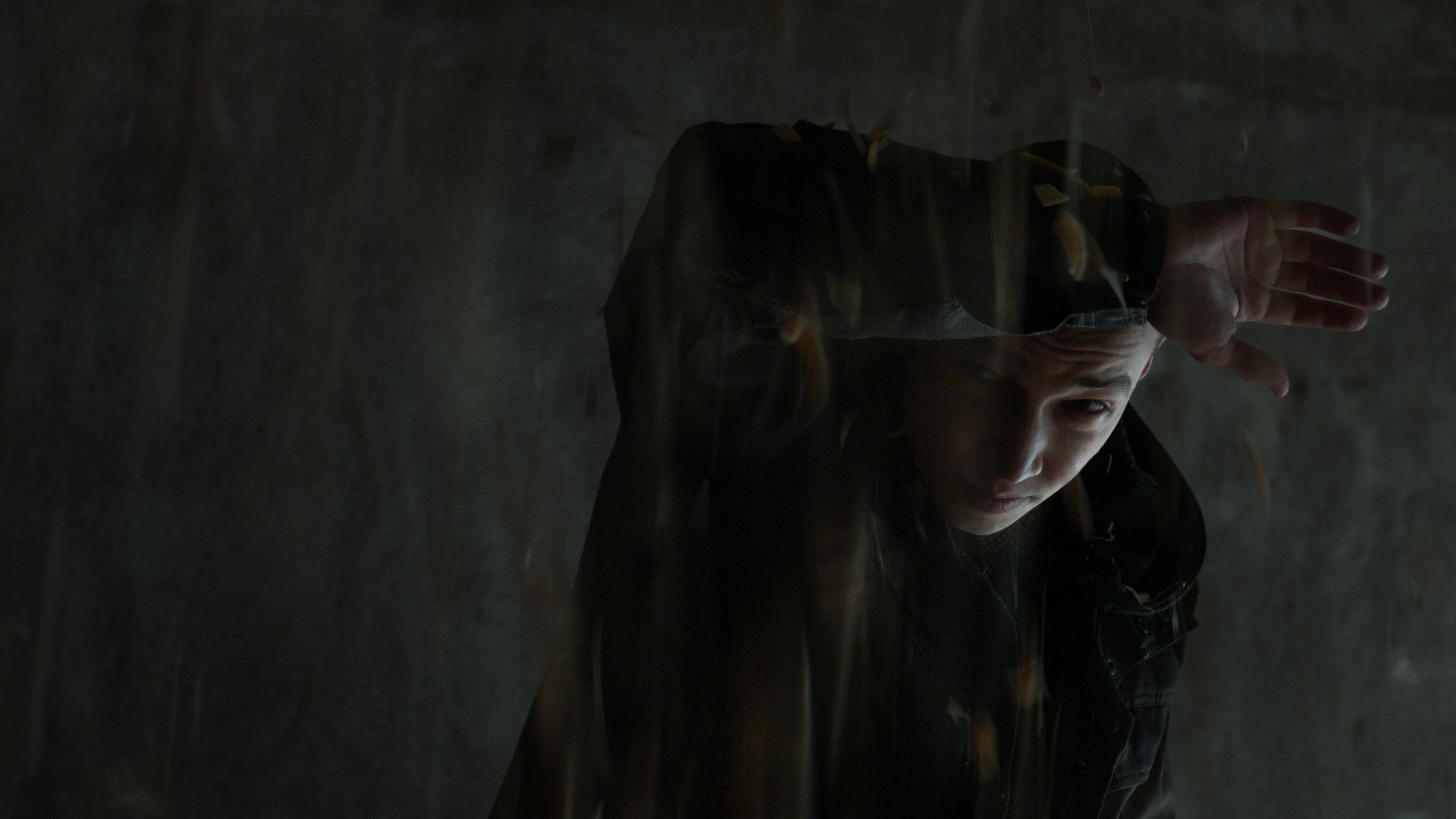 Ein ominöses Bild eröffnet diesen Film: Es regnet Holzreste auf einen Burschen mit geschorenem Kopf, der sich mit erhobenem Arm dagegen zu schützen versucht; das Prasseln der herabfallenden Chips mischt sich in den anschwellenden Lärm der Sägemaschinen. Schnitt in den dunklen Wald eines Computerspiels, in dem ein Forstfahrzeug das andere verfolgt; die telefonisch entrückte Stimme eines Kindes verständigt sich mit seinem Spielpartner, aus dessen Augen wir auf die imaginäre Szenerie blicken.