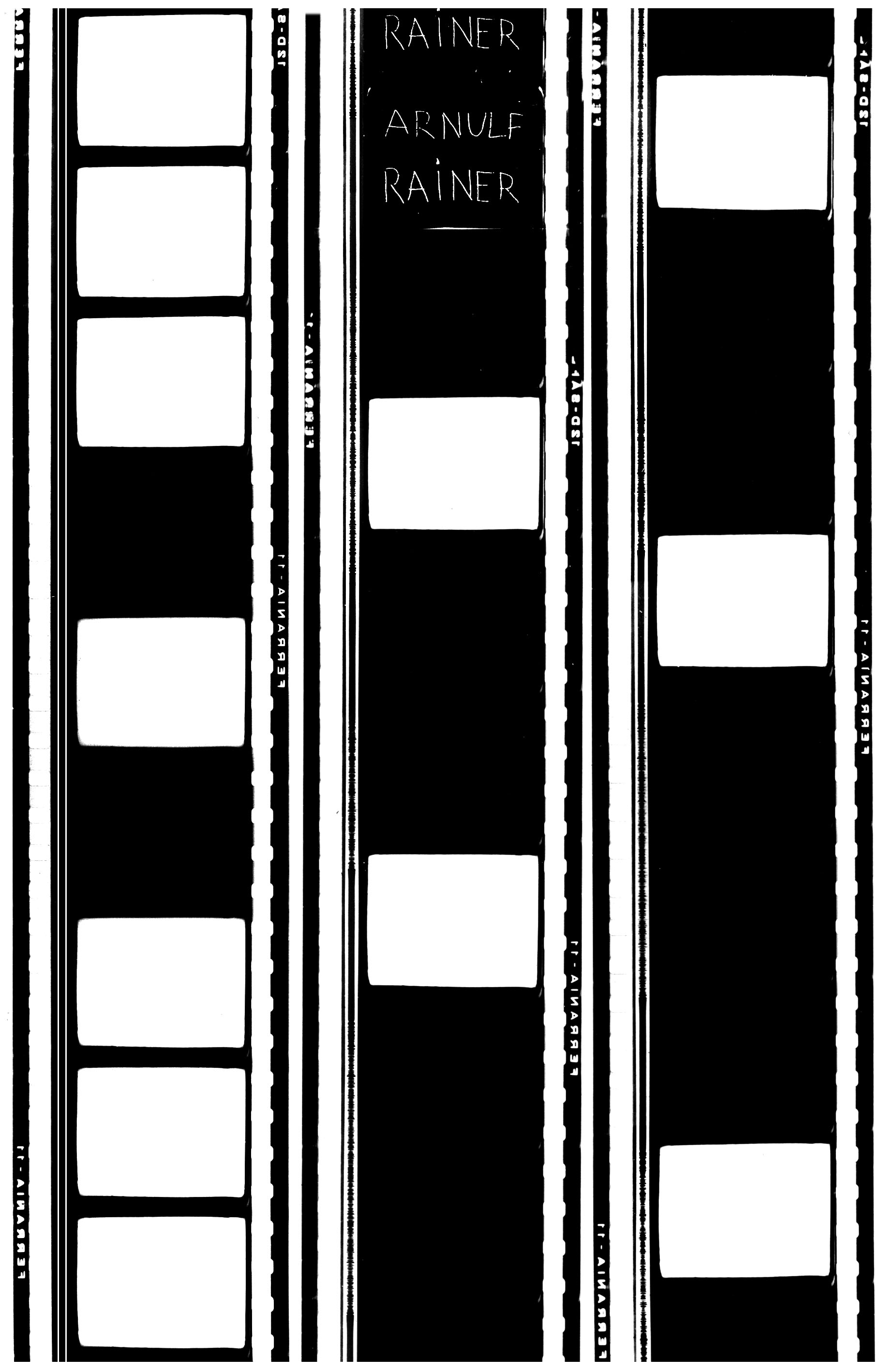 This is a film composed entirely of frames of solid black and solid white, which Kubelka strings together in lengths as long as 24 frames and as short as a single frame. When he alternates between single black and white frames, a rapid flicker of motion-pictures projection; during the longer sections of darkness one waits in nervous anticipation for the flicker to return, without knowing precisely what form it will take. (Fred Camper) Arnulf Rainer, an architecture built in time by cinema uses only the four essential elements of the medium: light, darkness, sound and silence. (Peter Kubelka) With Arnulf Rainer, his third metrical film, Kubelka arrived at the most elemental components of cinematography – namely light, absence of light, sound, silence. These are the four poles from which all of cinema, all of film is suspended. Stretched to their utmost limits, all illusionism is driven out. The last trace of a spatial reproduction is extinguished. And the illusion of movement based on visual similarities of sequential frames (whose minor differences disappear upon projection and thanks to the sluggishness of perception are transformed into an illusion of continuity) is also obliterated. (Peter Tscherkassky)