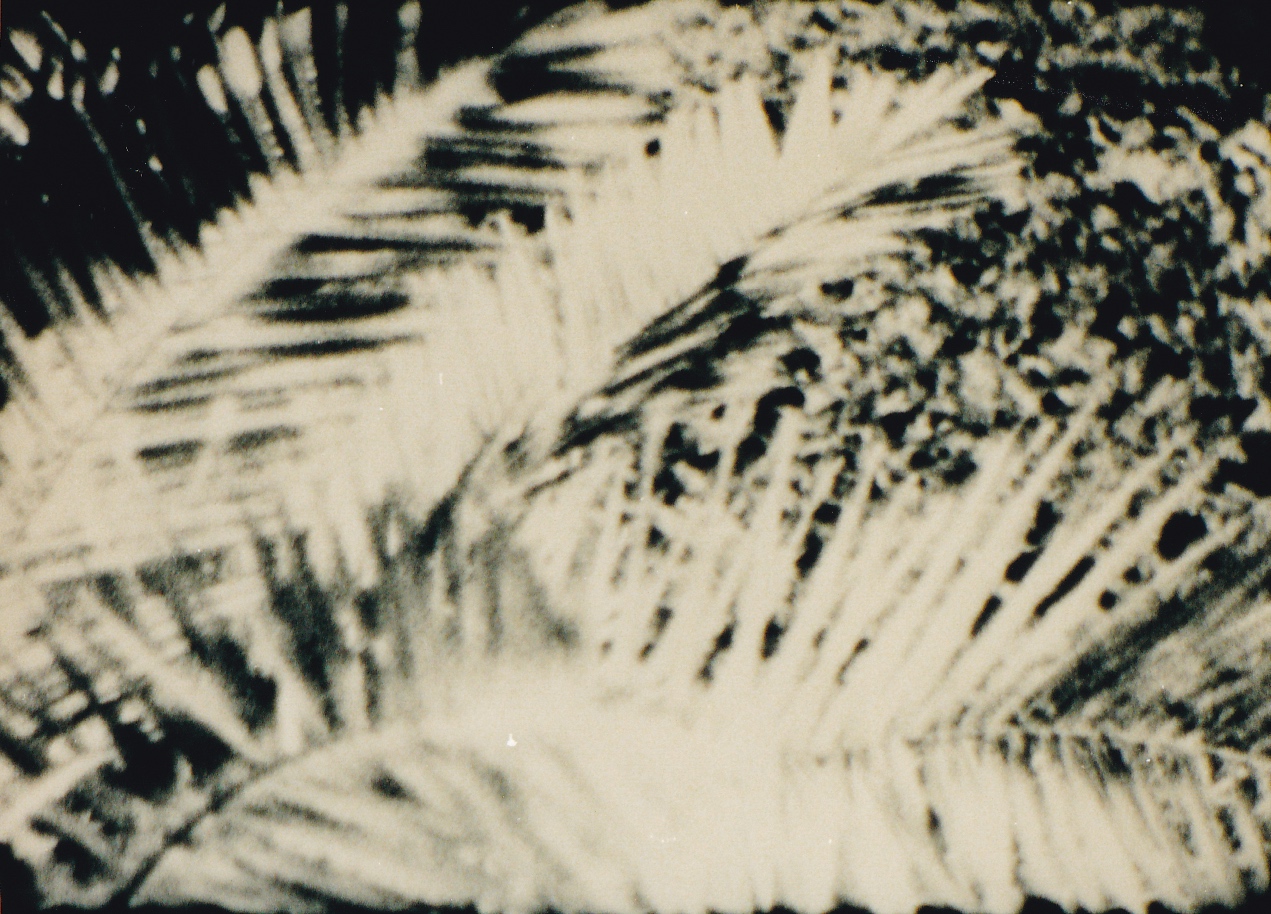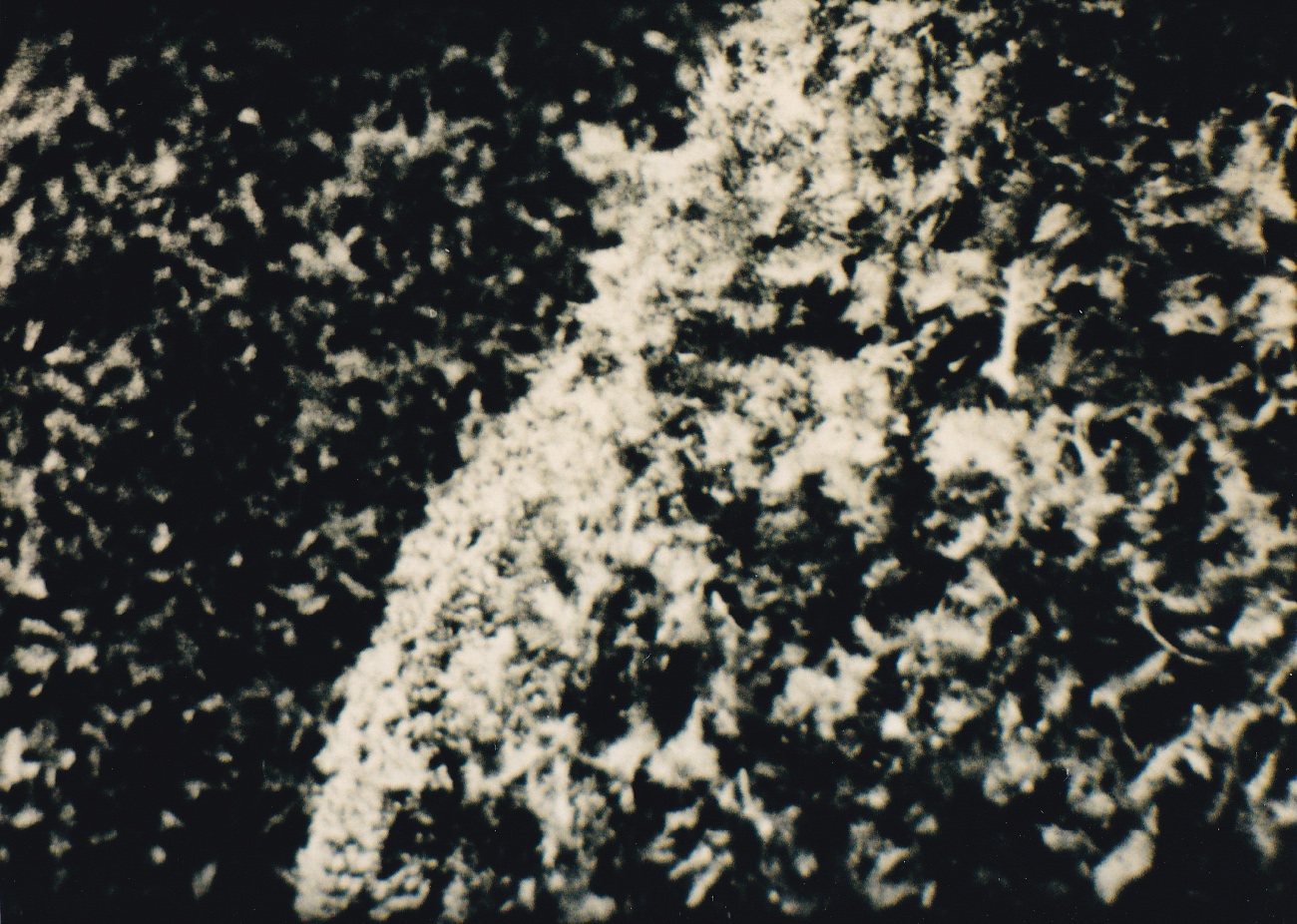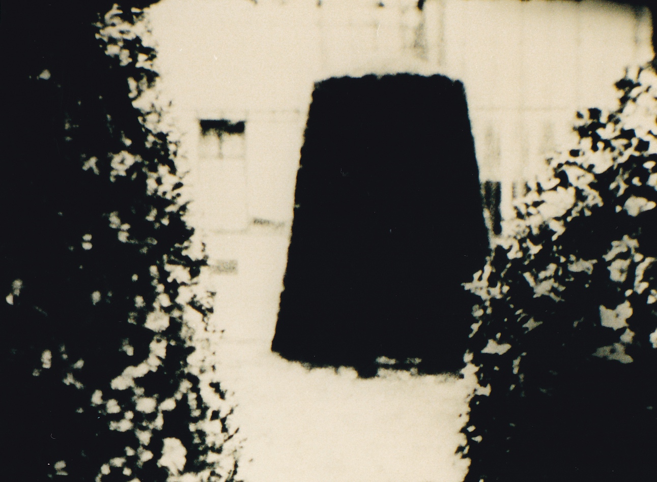 The over exposure of the material and the focus manipulation allow the geometrically pruned bushes and trees to appear to be ice crystals growing on the surface of the screen. (Gerald Weber)