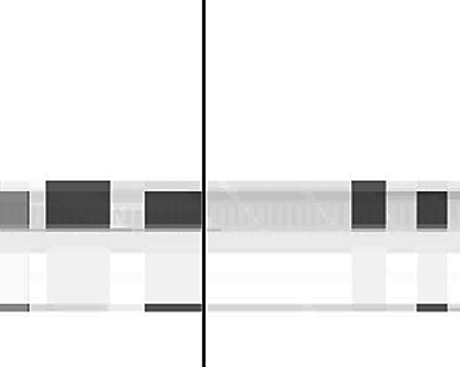 acoustic interference are reproduced as visual impurities and break through the time axis in a rhythmic way predetermined by the music. in a purely technical sense, the visual interference was filtered out of the musical level by means of algorithms and transferred to the visual level through recoding.