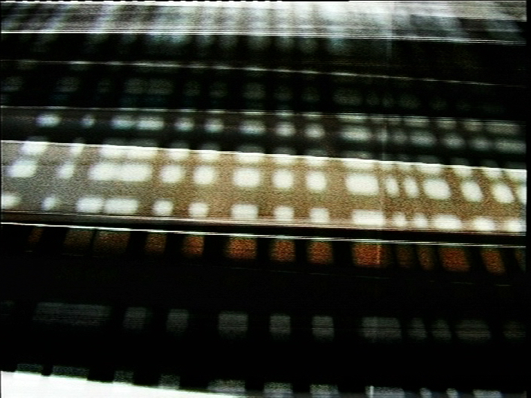 superimposed horizontal and vertical patterns in rich, dark colours flow across the screen at pleasantly slow tempos. in contrast to the video´s meditative effect, these abstractly floating visual sensations were created with footage showing speed. krzeczek obtained the effect of blurriness caused by movement by shooting everything from moving subway trains. as a result, the digital video camera´s eye was not able to produce sharp images.