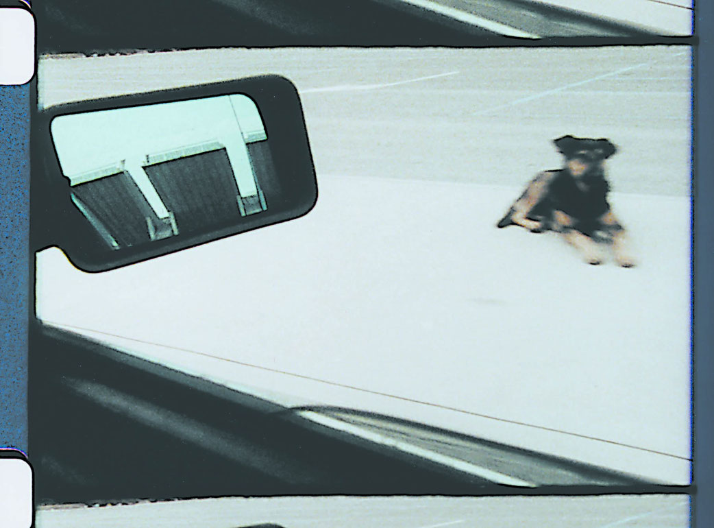 Fragments of a story from the no-man´s-land. In Josef Dabernig´s Jogging, an anonymous driver behind a filthy windshield traverses an increasingly foreign landscape to the accompaniment of Olga Neuwirth´s captivating and piercing music. The journey through a faceless land of highways ends at an empty building which seems to have more in common with a flying object than a soccer stadium: futuristic realism, a minimalist musical of the third kind.
