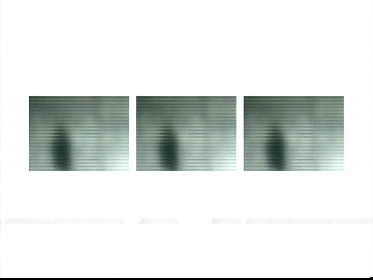The video explores combinations of geometrical formes, building up corresponding sounds. Consious of their roots in historic avantgarde animation, but the same time drawing in structural cinema, the two filmmakers compose a "picture" which evolves from rectangels that appear on and disappear from the blank screen. White background, dark "windows", in which a figure seen from above passes through at various speeds. His diagonal passage, doubled and inverted, becomes another element of geometry and rhythm. The image, taken from an old film, evokes those of closed-circuit surveillance cameras by its impersonal repetitiveness. The sound obsessivily paces the variation in form on the screen.