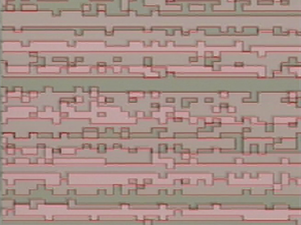 In film and related audiovisual forms according to Michel Chion the relationship between sound and image is primarily vertical, and the former tends to play a secondary role. This same applies, though inversely, to music videos, in which the musical structure sets the rhythm of the editing and all motion in general, regardless of the freedom of the images themselves. blinq questions such audio-visual relationships in a radical way. Billy Roisz had 10 musicians from Austria, Germany and Japan produce short electronic sound files. These fragments, some lasting only a few seconds, were then transformed into visual patterns by means of feedback loops which function as electro-acoustic impulses and then further manipulated. The resulting images, each of which conforms to a clear reduced visual concept, were taken out of synch with their original soundtracks: A black frame is shown with acoustic accompaniment, followed by a silent version of the corresponding visual miniature. At first, the musical structures or elements of what has just been heard are recognizable in the visual patterns, which are at times reminiscent of macro shots of microbiological specimens.