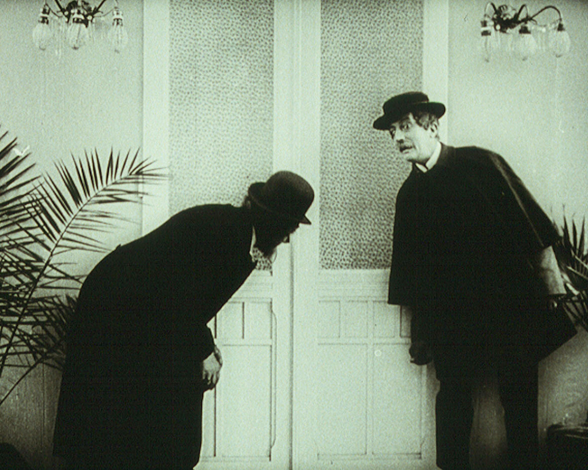 In the beginning a woman emerges from darkness and goes through a door. She glances fearfully into an imponderable exterior shaded midnight blue. What follows occurs rapidly, with related motifs: There is slapstick (fat men and fall guys) and risqué images (women in changing rooms), melodramatic and moving scenes, while others are silly and destructive. Film ist. (7-12) is a collection of moving pictures from the first thirty years of a medium which was then still silent. According to Gustav Deutsch, film is so many things that a catalog of what it can be must necessarily remain open.