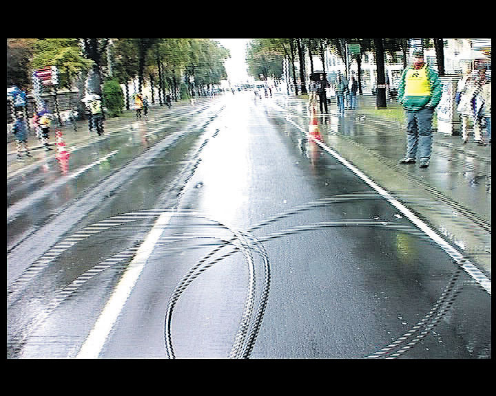 Since 1992, when he was diagnosed as being afflicted with multiple sclerosis, Martin Bruch has been moving along with the help of mechanical appliances. At first he used a scooter, now, as this is no longer possible, he depends mainly on a handbike. From 12/2001 to 12/2002 he filmed his rides through big cities and in the countryside employing a helmet cam: These images and sounds represent at least an approach to his own perception. Thus the audience of his documentary handbikemovie will find itself being stuck in a traffic jam on New York´s Times Square, between tramways and car lanes on the Vienna Ring, or alongside a double-decker bus in the heavy traffic of London. Motors are vibrating all around, tyres are thundering on the asphalt, and now and then sounds of music can be heard from a passing-by convertible.