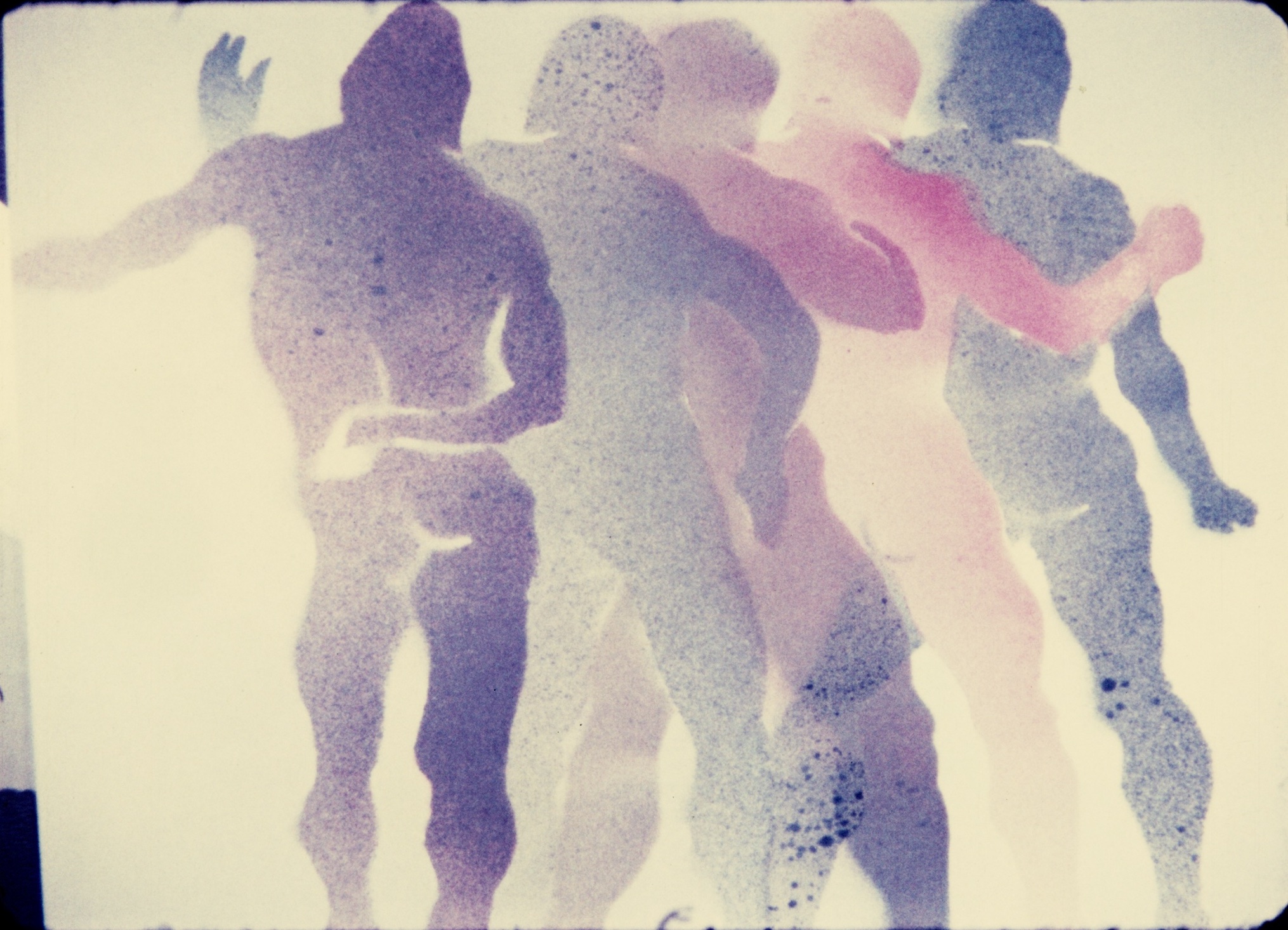 Human forms in Shapes dance to J.S. Bach´s breakneck runs on the harpsicord. However the animated steciled spray paintings of plump discus throwers and wiry girls quickly confuse our culturally conditioned eye: What´s male, what´s female?