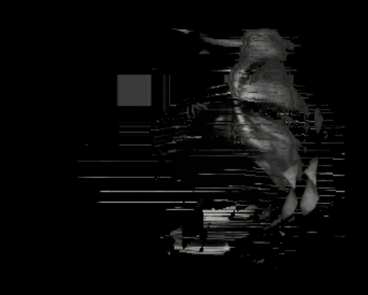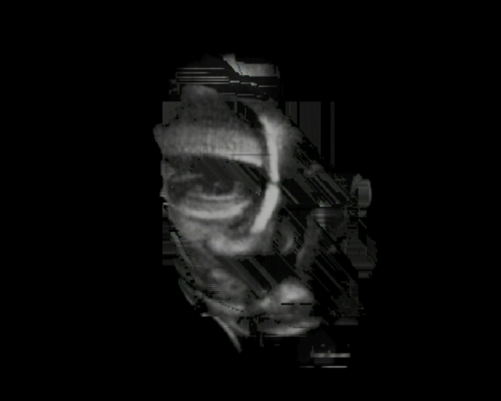 is that of the love sick, intense sorrow at the loss of love: "I am sad, because you do not understand me / melancholy steals my sleep at night." Siemar Aigner´s pathetic bass drowns out the scratchy surface of electronic accompaniment. The antagonism between the Spartan electronics, which tend to refuse to lead the melody, and the presence of a human voice is mirrored in the visual translation of the number: the image of a human face (created in a computer by means of 3-D software) is horizontally deformed to the rhythm of the verse, disheveled along the lines of the acoustic information from the computer. When the song stops, black takes over the picture and narrows the narrative space down to music. The absence of the human element is heavier (textually, as well as visually) than its presence.