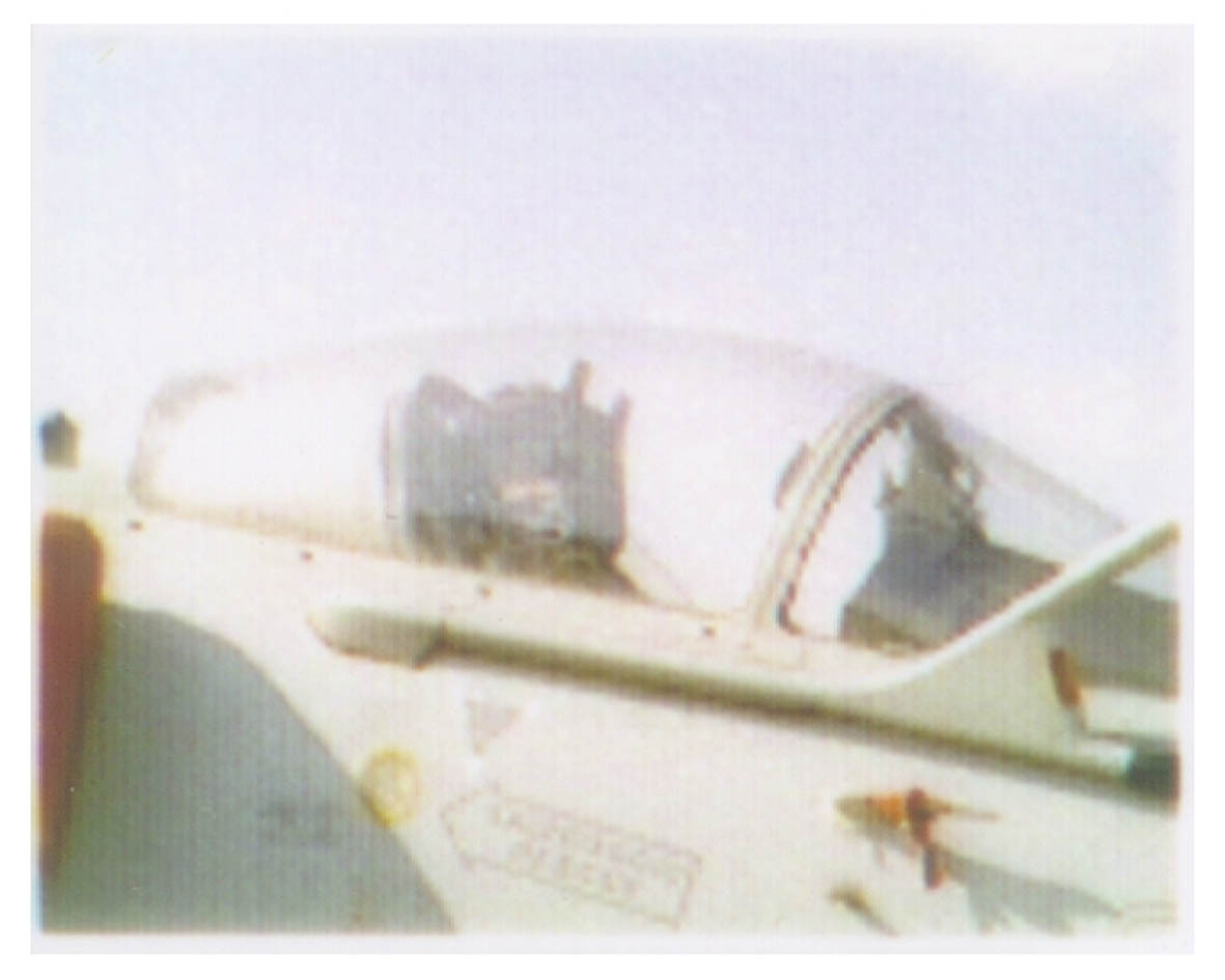 The cockpit of a fighter jet and its fully-equipped pilots are visible as if through frozen fog. Portions of the greenish ocher of the jet and the uniforms stand out partially and blurred against the predominating frigid whiteness. A dull roaring and crackling on the soundtrack underlines the threatening and eerie effect of these vague impressions.Photographs taken by Karø Goldt during an air show were used in the production of mir mig men. These moments, frozen in time, digitally manipulated and animated, resulting in a "photo film", create a broad field of associations for innumerable scenarios involving war and other catastrophes. It suggests looking through a frosty window at faded relics of a machinery of destruction which is both frightening and absurd, one´s perspective completely unrelated to time. The scene´s stifling atmospheric density is the direct result of these experiments on the edge of visibility.