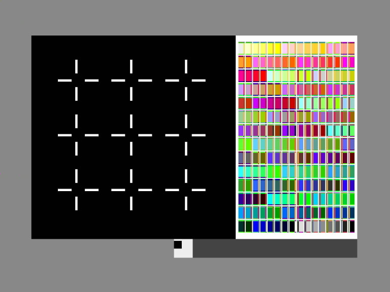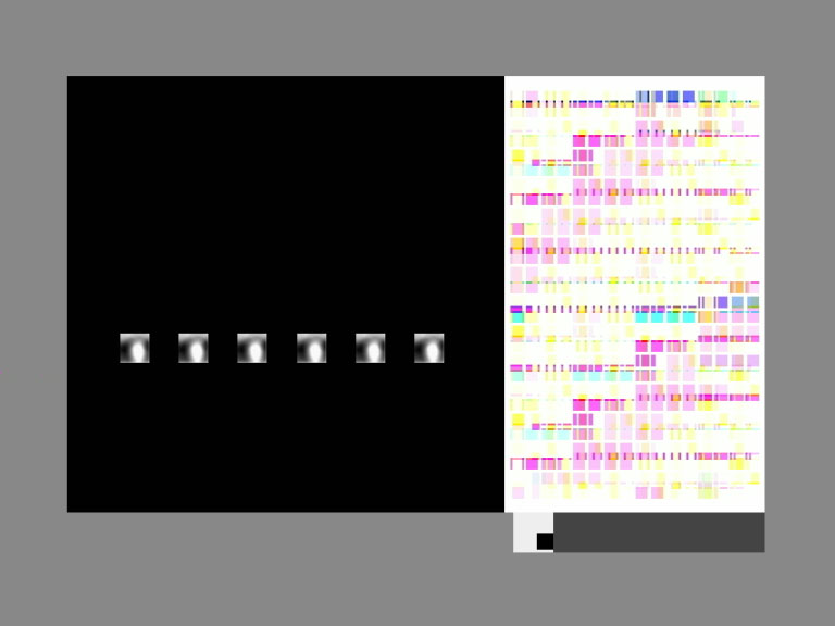 the right section of the screen contains a palette with patches of color reminiscent of gerhard richter. the colors combine and recombine in ever-changing mixtures as if they were controlled by an electric relay.