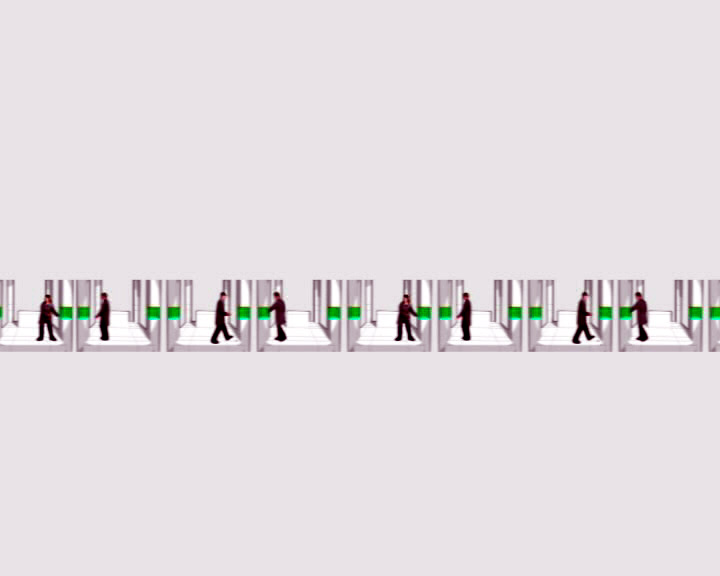 An image is created. We see a production line and working hands in repetitive motion which belong to the four protagonists and makers of this video, Harald Holba, Elke Mayr, Manuel Maxl and Ines Weber the artist collective plan-c. The production line is presented as a possible venue for ritualized work processes. Unrecognizable objects or products are placed in green boxes which indicate that the production process is intact. The same movements are performed again and again. The repetitious, almost tormenting soundtrack, a loop, reinforces the monotony of the action. The video progresses toward a climax which is formally set off by two components: The camera angles gradually concentrate on the scenery, and the speed increases steadily. The image wobbles, begins to fray; its movements accelerate, and it withdraws again and again to the vibrating line, never coming to rest. Expansion and collapse alternate. The human figures follow its example. Standstill signifies the end. And suddenly the climax comes. Enough is enough. The objects which have just been produced are thrown to the floor. Work stops. The colour green no longer defines the territory, it has been replaced by red, which in this context signifies STOP. (Dietmar Schwärzler)