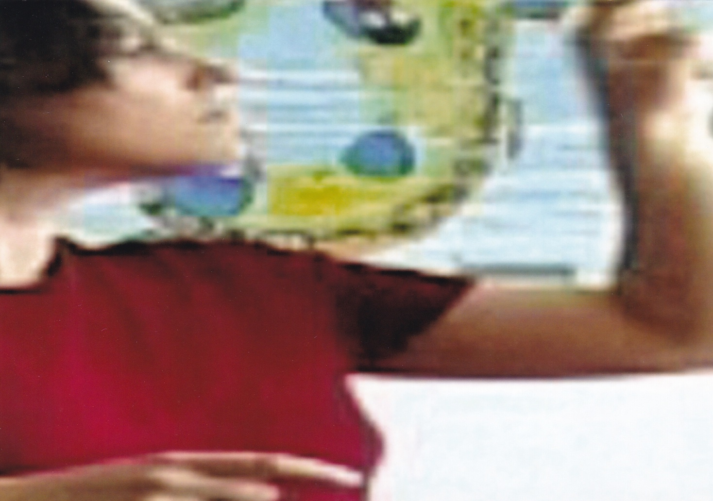 Flora Watzal´s camera follows the womans gestures, but what we see has been extensively manipulated; the images seem to have been removed from the familiar spatial coordinates, set into independent motion and zoomed until they are extremely close to the screens surface. In Gestures, each videographic image created by Flora Watzal has been enlarged to such an extent that the protagonists hands define the frames borders. These alterations of the material´s microstructure re-center the image and minimize both the camera´s movements and visual references which could be used to judge spatial relationships. The room spreads out like a nearly static plane, a pure electronic surface, icon or idea for an image, while sign languages code system, the choreography and the speed of the protagonist´s hands produce a constant alternation in the images axes: This in turn provides a basis for the viewer´s artificial experience of three-dimensionality.