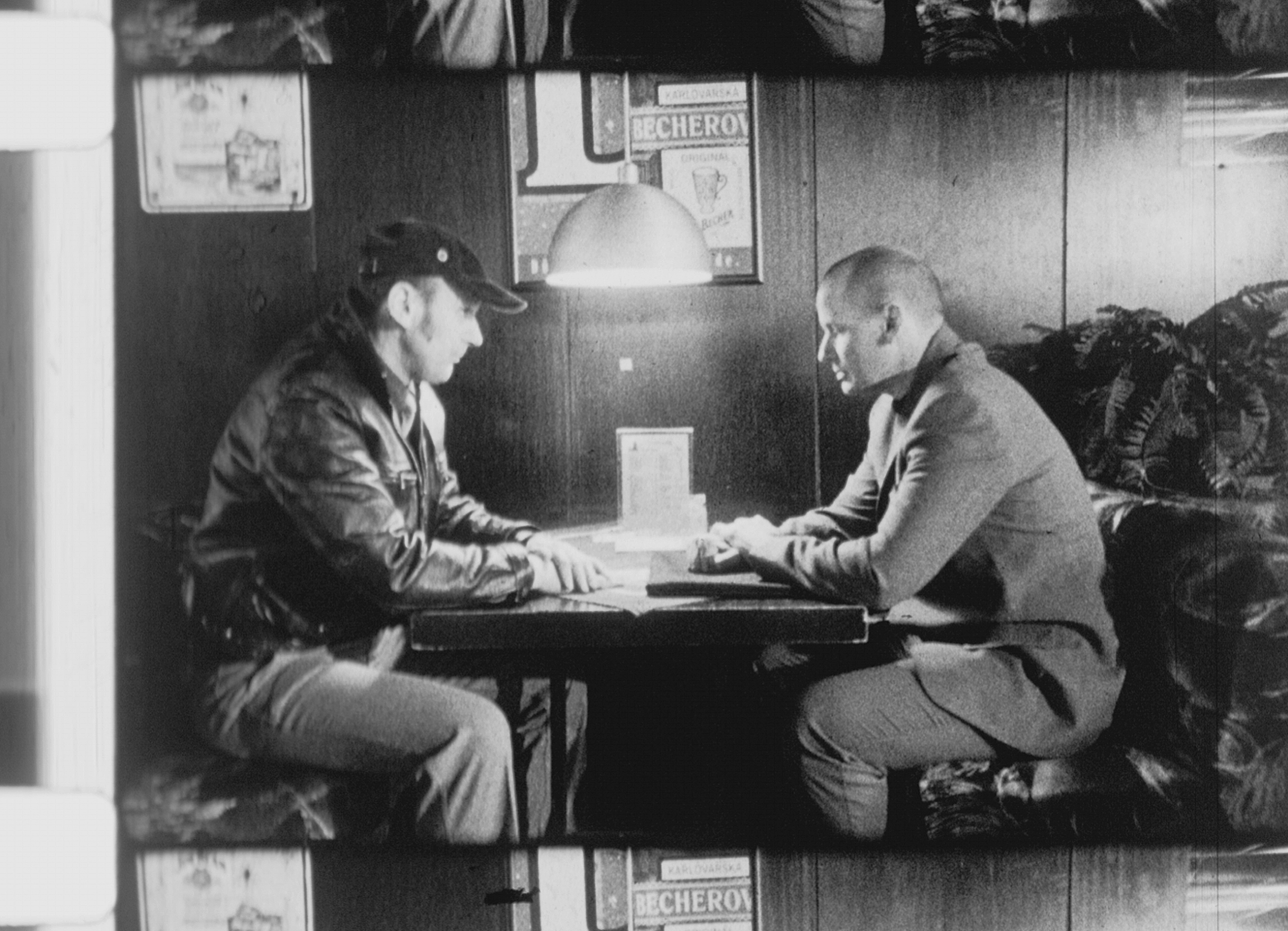 The images, on the contrary, move on the surface, around the factual nature of the phenomena: the gaze remains fixed on potted plants or on the actors´ signature on a few pieces of paper. When the camera focuses into the depths of the room, or films through a window, we see nothing - nothing behind, nothing out in front: nothing special. The gaze is aimless, what it shows us is unforeseeable: A succession of plain interiors in the styles of the 1950s and 1960s; views of a small industrial town in the fog and cold. Time has frozen. The man sits and waits, waiting to leave.