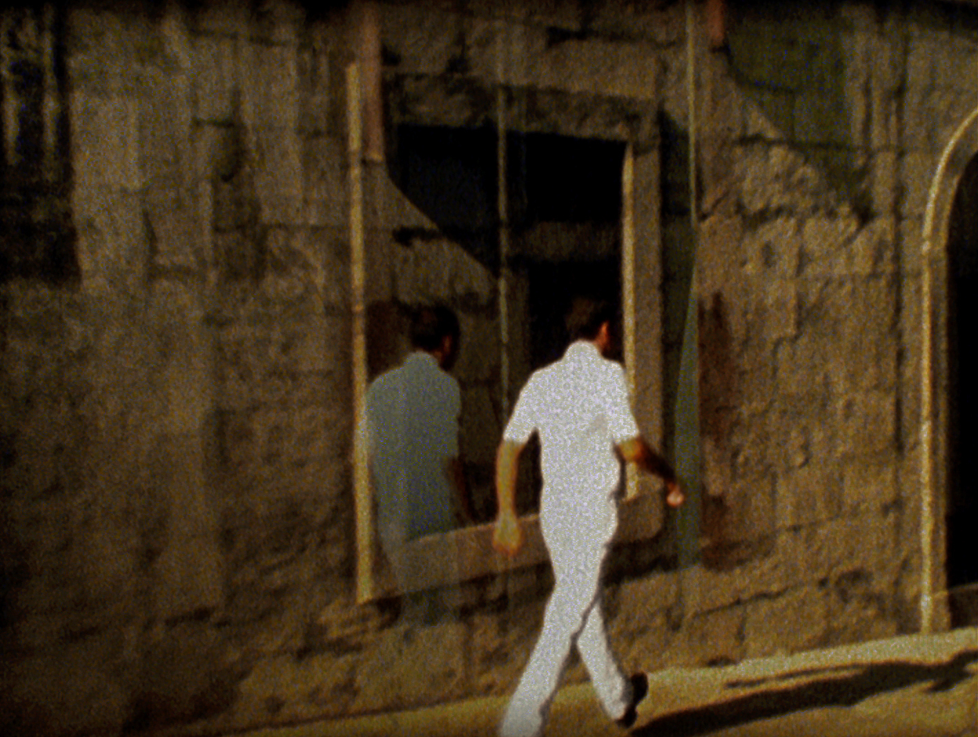 Another found footage element is a super-8 sequence showing a mother with her baby (pictures shot by the director´s father). In a series of delirious cuts, Müller confronts his central figure with the redness of blood and wine. A shave becomes an unstoppable bloodletting scene, like in Martin Scorsese´s short film, The Big Shave (1967). In pictures reminiscent of home movies, the central character is seen visiting Lisbon´s tourist attractions and a botanical garden. The vulnerable but resilient leaves of cactuses, into which travellers have scratched their initials, give way to close-up shots of the diseased skin of the central figure. While red blossoms close, the man seeks refuge in a tightly buttoned red shirt which he handles like a precious curtain. But then the maid is already back, tearing the sheet from the red mattress in preparation for its next occupant.