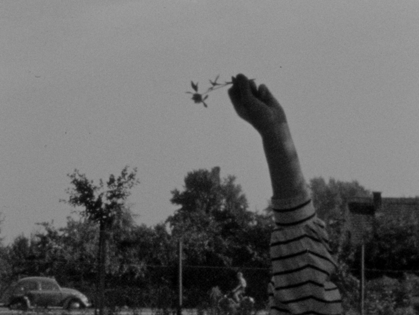 A "stroll" at various locations: the St. Marx Cemetery, the Prater park, Carnuntum. We see people taking walks, construction workers, people flying model planes and other little observations. Kren also used a short segment of found footage in colour which shows a woman in a bikini.
