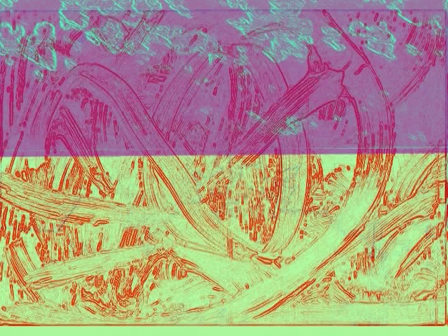 Four visual structures - both live action and created on an animation bed - were intertwined by means of multiple exposures. This material went through a digital post-production process which included alteration of the colours and reciprocal superimposition, thereby expanding painting to include film and giving photography a painterly dimension. (T.S.)