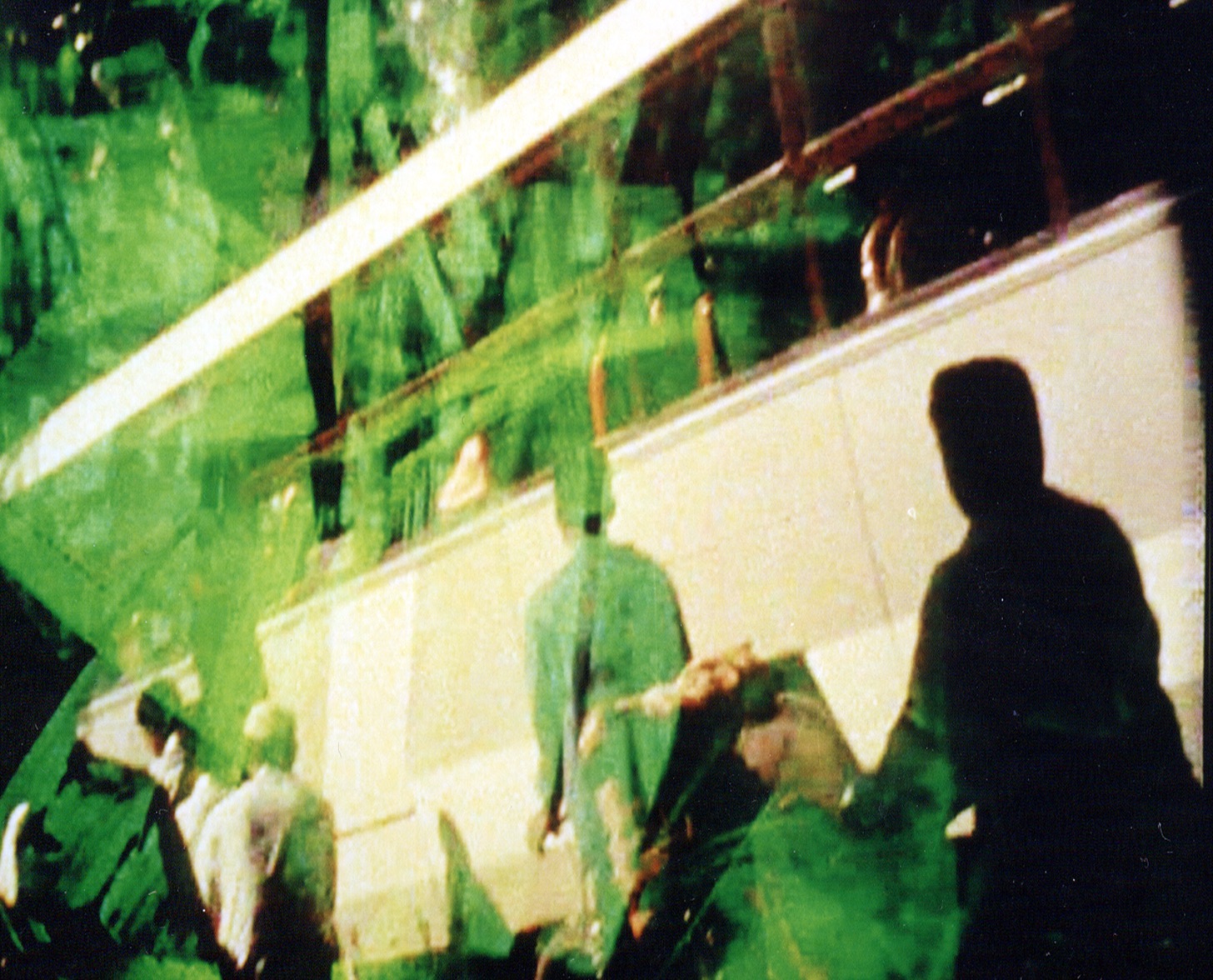 A street in one of the mega cities on the indian subcontinent. The basic material was shot in Bangalore in 1999. A walk along the city´s busiest road. This material was overpainted, so only a rough structure of walking remains. (Thomas Steiner)