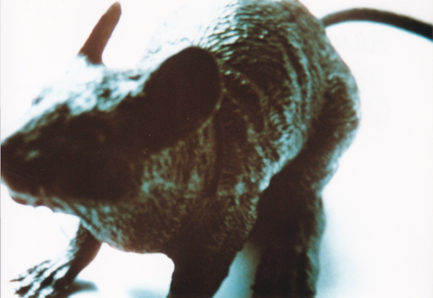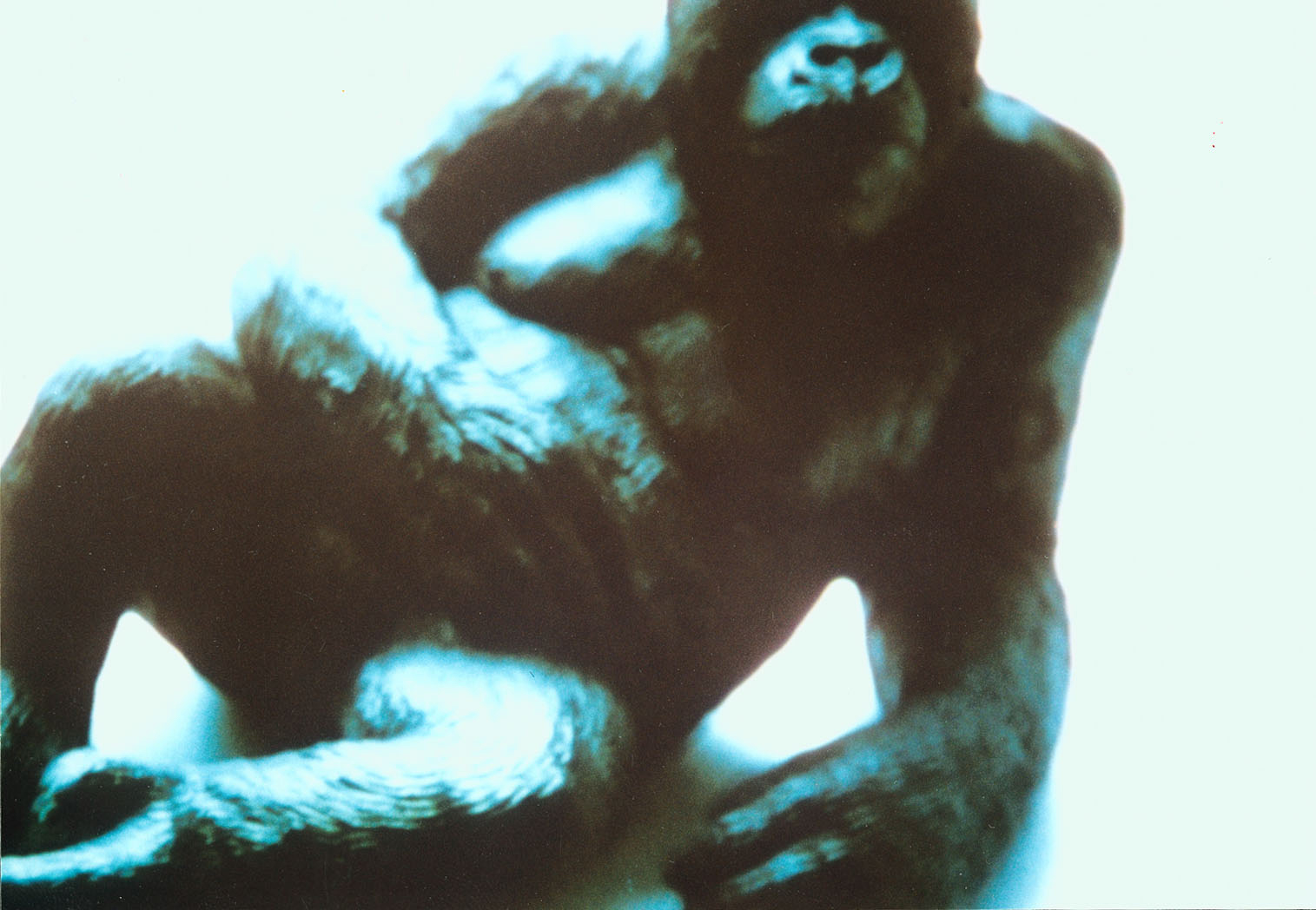 While filming from the screen I filmed myself into this scene from Mix-2 (1997) by subliminally distorting the time structure. This gave me the idea of editing a number of lightning bolts from Blitze (2000) into the structure, which in turn led to the idea of putting a plastic rat at the beginning and a plastic gorilla at the end. (Dietmar Brehm)
