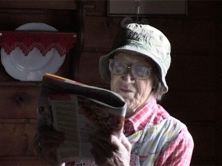 What remains for the filmmaker to show in steady sequences of shots is the work, in steps: milking, mowing, or making butter, the little climbs and descents around the Alpine hut on steeply sloping terrain that the 85 year-old woman deals with everyday; having a snack, reading the paper, or listening to the radio in the short pauses in between. The supposedly idyllic, postcard scene of the first shots, the introductory images of the summer-time pasture as a vague, not specifically identified site, are just as demystified as the supposedly self-evident fact of the documentary act. (Isabella Reicher)