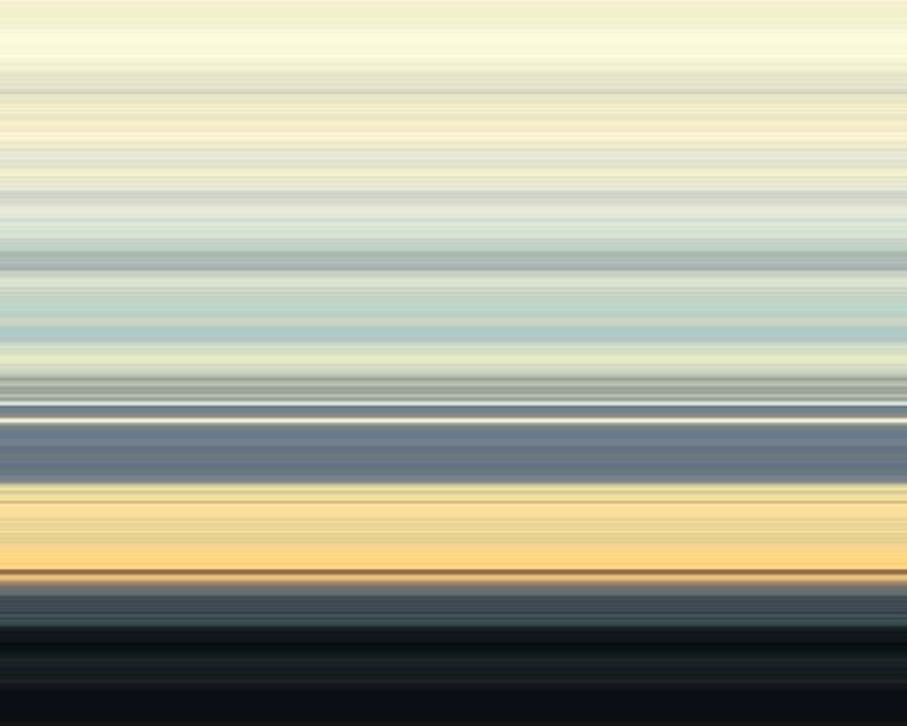 view from a floating raft composes the image with horizontal stripes (a skyline) which at first form a horizon in the lower portion of the picture. Then, in rapid and irregular alternations, constant vibrations, they fill the entire field. This time the lines tend to move rather than the colors. The rhythms of night and day alternate in the space outside the picture, at the same time enabling it to take on a structure. The broken, torn-up melody drives the visual aspect, the contrast provokes a nearly cheerful sight. The space occupied by the images is an open one.