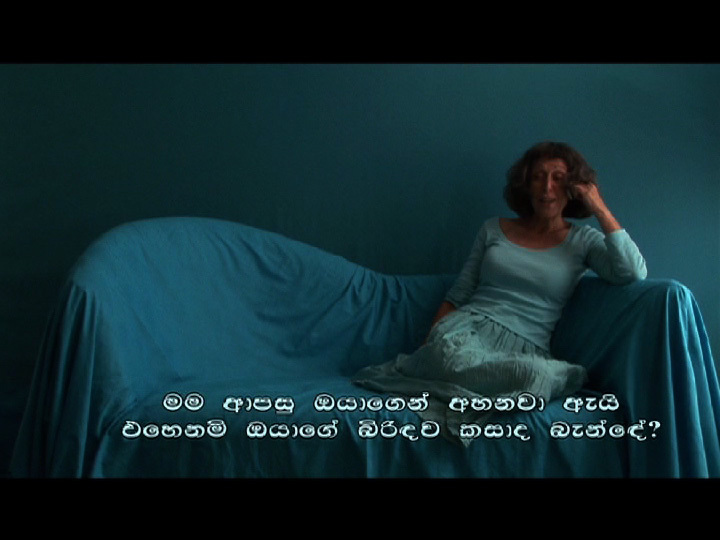 A woman calls her boyfriend, whos Singhalese. They plan to get married. An intimate conversation. Not the normal kind of questions, but questions they might be asked. By the police. Questions about their common living space and private nicknames.
