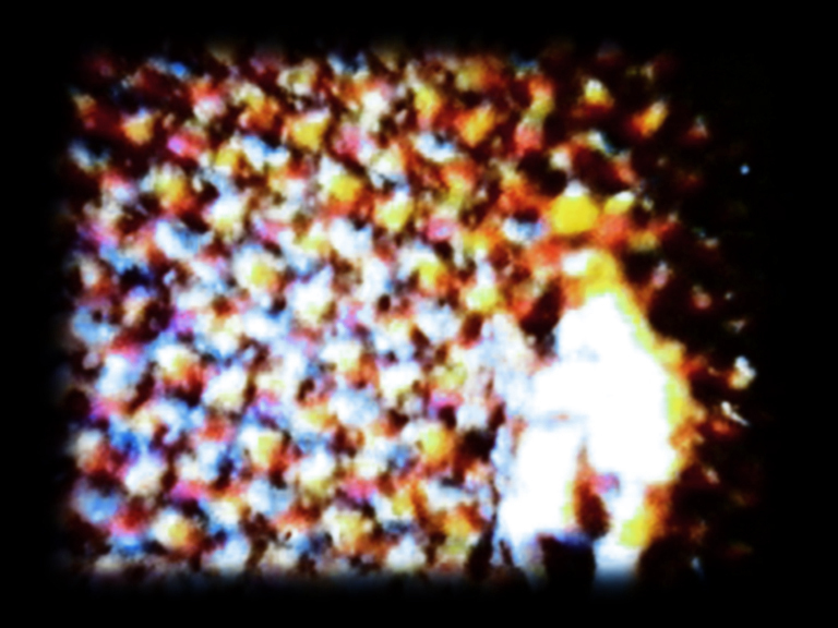 The abstruse title Wk=mMv2/2 is the physical equation for a molecule´s kinetic energy, and it refers to the images shown in the film: They were created by zooming at coincidentally photographed individuals on postcards. As a result of the extreme enlargement, the grid of the cards´ printing is made clearly visible and the figures, many of which are only a few millimeters high in the original, are greatly abstracted.
