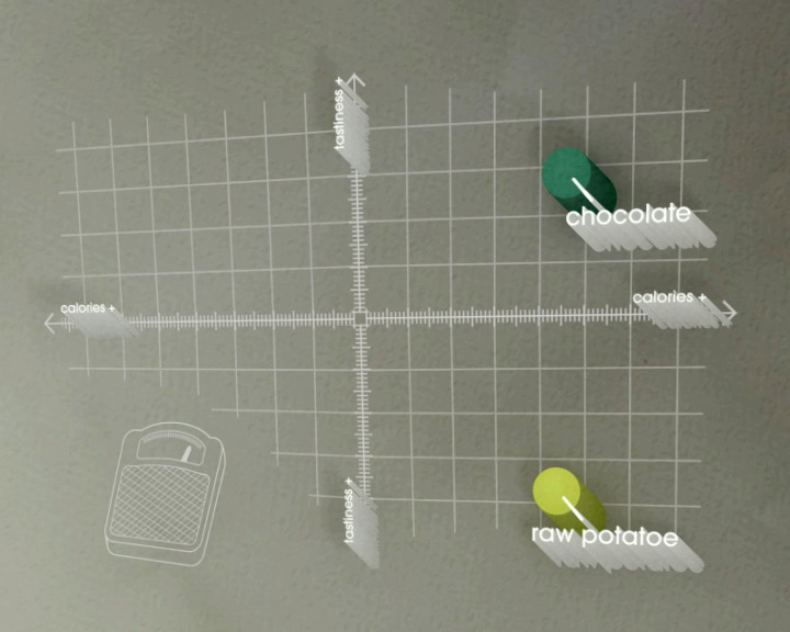 The wild chains of associations set in motion by Le Grand Content are insidiously translated into the language of contemporary PowerPoint presentations: pie charts, graphs and tables. At the same time, very subtly, the connection between beer and self-confidence, and the ratio of (psychological) pain to (physical) scars is explored, as is the inner connection between solitary consumption of ice cream and an intense increase in self-disgust.