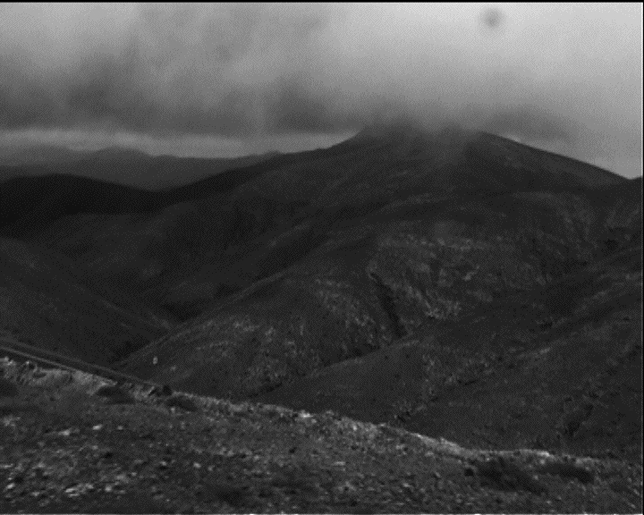 around and around by Annja Krautgasser refers to this border in multiple ways: there is, for one, the horizon, both end and unknown beginning, the division of the world, the demarcation of the field of view; there is also the panorama, the omniscience, the "scopic regime of modernity", the transgression of every containment of the gaze, removing its boundaries; and then there is still speed, acceleration, the crisis of the view, if not its catastrophic failure. And naturally, the cinematic medium (not video or film) is present, which Annja Krautgasser does not thematize, does not show in the montages of horizons rushing by (distinctive mountains and nearly abstract "deserts"), but rather, exhibits, one could say. Is it inherent in the event of the medium - as Jacques Derrida wrote - that what appears also disappears at the same time? Then around and around seems to work down to that vague "seam" of the visual on which the filmic image threatens to go out, to disappear behind the horizon, and appears to tackle this erasure with ecstatic performance (i.e., with cinematic means). A postponement of disappearance that even seems to permit the "space" of the visual in the first place.