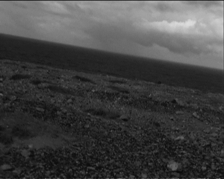 Annja Krautgasser’s Around and Around is – at least at first glance – a simply structured video. The artist records the surrounding area with the camera, the landscape of an island, following various points along the coastline. She rotates around her own axis, so the video appears as a moving image stream along the horizon. Krautgasser measures the limits of the coast in two ways, on the one hand physically, by pacing the shoreline to capture the boundary of the topographic area of the island, the other by means of a rotating movement of the camera to explore the limits of the apparatus: How far does the eye extend with the camera, where ends the visibility of this upgraded, telescopic gaze? Of the two different recording methods, Krautgasser creates a film, which seems to follow a panoptic logic. The result of this dynamic rotating form of account is not a calm, centred, or contemplative landscape; rather, it forms a visual current, a flow of images, based on the movement of the artist on her axis. This performative visual process, played out in a “natural” environment, leads to the permanent displacement at the centre of the image. With this centre being used to asymmetrically deterritorialise space, an opposite to the macroscopic gaze is reached, a loss of visibility. The clear, centred image and its related visual and historical view of the world which regards the subject as the centre of the works construction process, is dissolved. Instead, the landscape, the surrounding space is traced as a dynamic diagram of movement in search of a recording process or a knowing gaze.