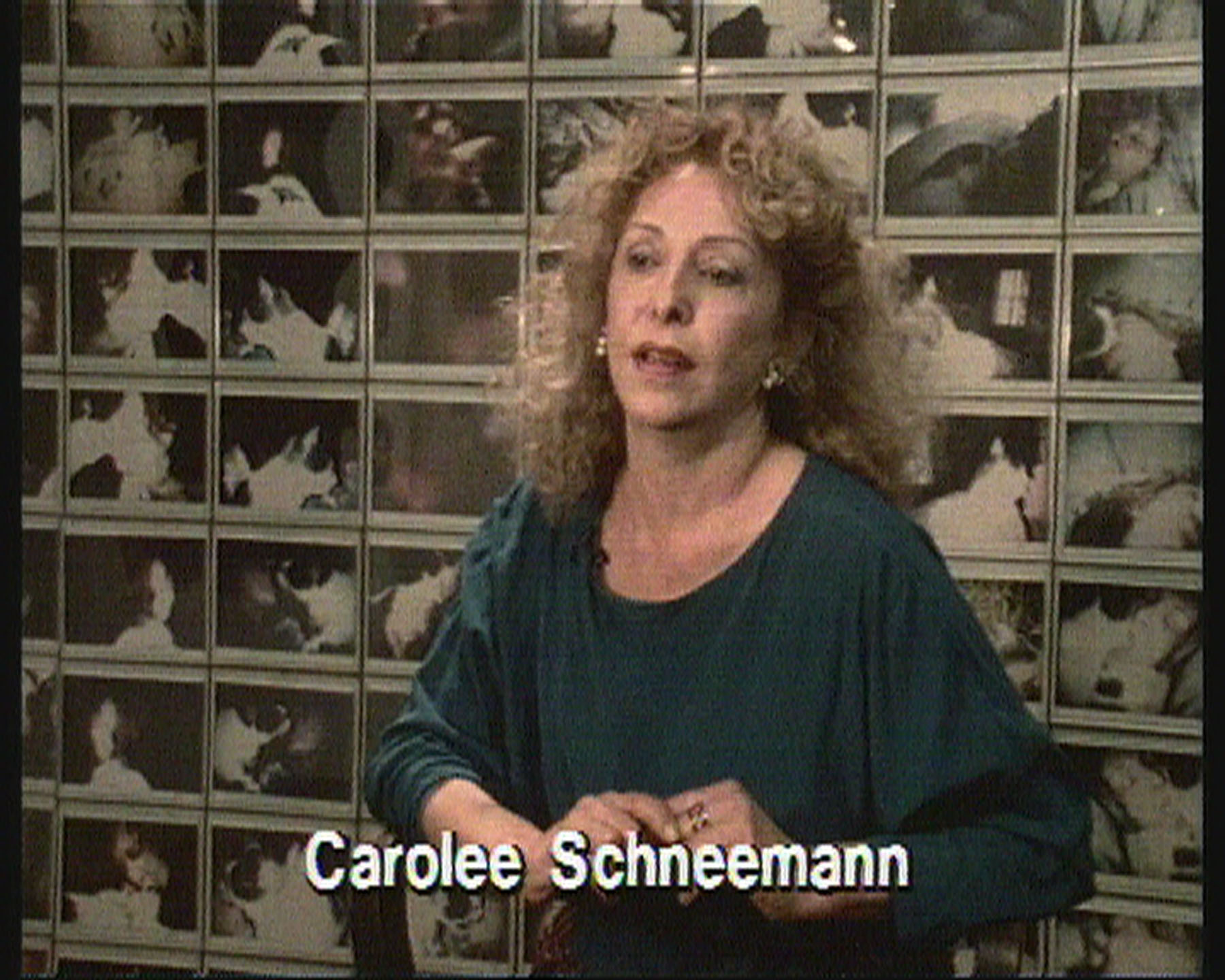 The ORF’s (Austrian TV-station) original intention was to have VALIE EXPORT create a program about Viennese Actionism, but she was able to convince the editorial department of the value of an examination of the international roots and trends. However she begins with an introduction of the literary actions of the Vienna Group, which inspired EXPORT, herself as a young artist in the early 1960s. In the same way as in Das Bewaffnete Auge the informative aspect is the focus, though not to the exclusion of the contemporary use of the medium and its possibilities.