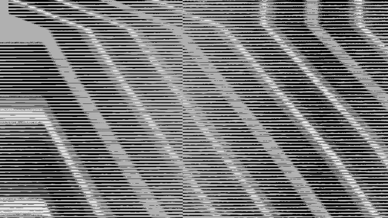 The video image of distorted areas~ proceeds from an aesthetic which runs counter to the logic of having a specific purpose, disturbing it at the most. In other words, this logic involves the usefulness of information-technology tools, in this case a software module used for implementing certain rendering effects in 3D computer graphics. It is intentionally used in a way opposite its intended function, putting the "meaningful" graphic 3D image into a completely irregular, dislocated black or white plane with "meaninglessly" oscillating lines and patterns. The sound is similar: Noises produced by feedback and an effector are interwoven with the image formations in a disordered and asignificant manner. The video is the product of perverted circumstances of representation, but what we see and hear, what "are" sound and picture, is distortion as such. This could also be regarded as beauty produced by decay.