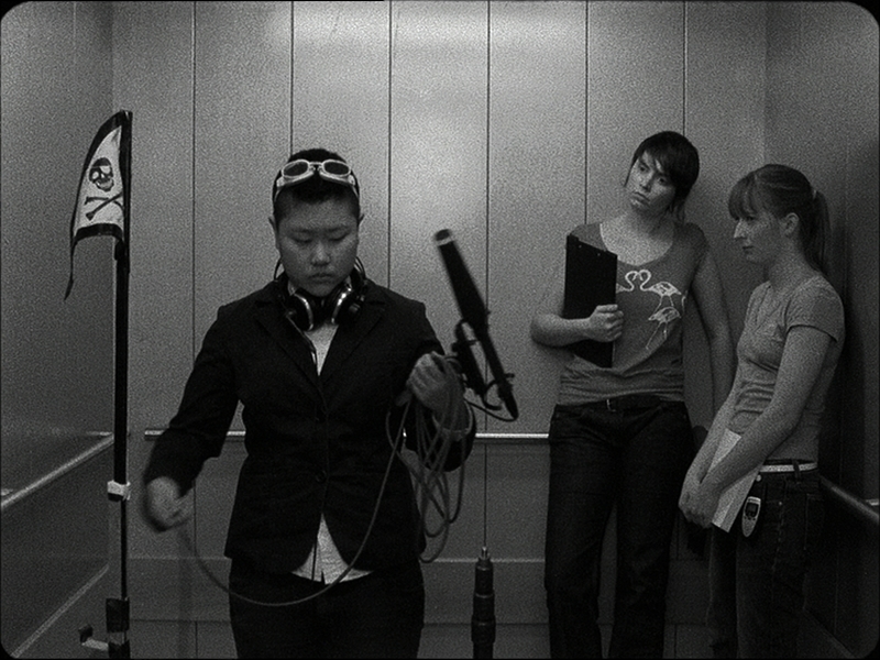 Ella Gallieni´s short film Horse Camp offers a glance into the mysterious world of a film studio. The scenes, shot in black and white, are not arranged as a coherent whole. Only speculation is possible about the actual film being made there. Rather than showing work processes - only very few scenes show people actually working - Gallieni focuses on moments in between: moments of waiting, coming and going, an atmosphere of absent-mindedness that can switch spontaneously to anger or exuberance. While some of the crew listen to announcements during the time between shootings, another one sets off with a microphone and diving goggles to explore the sounds of the building. The setting of equipment, which Gallieni repeatedly shifts into the picture like ornamental frames, makes the miniature scenes appear like flotsam in a narrative flow. They laconically traverse the interface between fiction and documentation, control and coincidence. Even the title is a cryptic play with signifiers: Horse Camp evokes the term "hors champ", the off, a place beyond the screen, from where these images shift back into visibility and audibility, from where they were excluded. It is not until a long tracking shot at the end, which seems like a paraphrase of Godard, that the participants are united in one scene. Nonetheless, on the sound track, everything remains unclear.