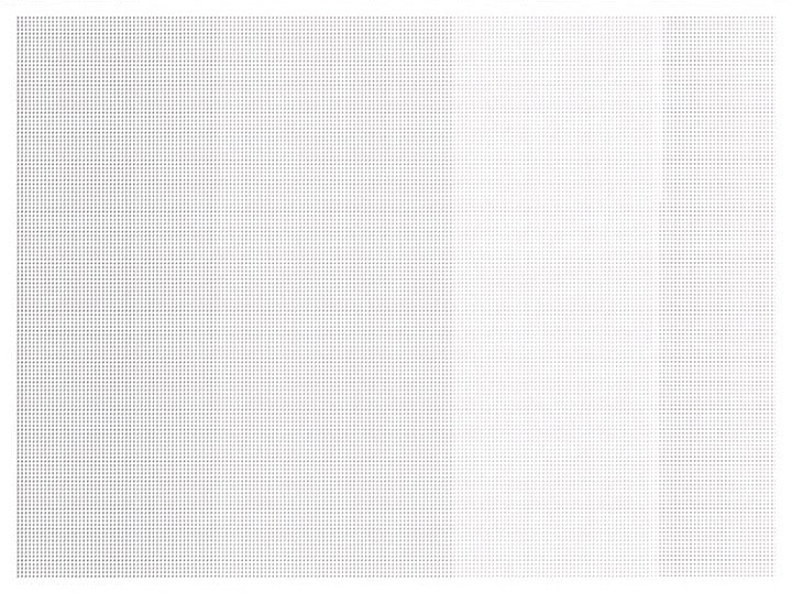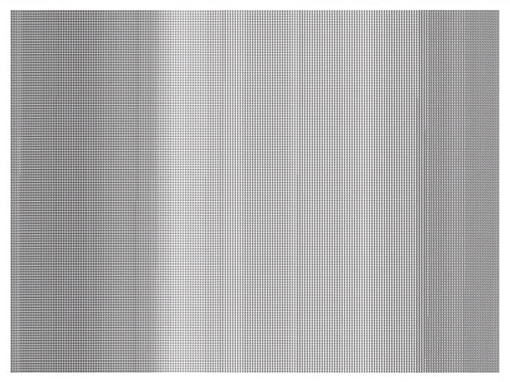 A vertical graphic element running from left to right draws across the white screen. The graphic´s appearance is so vague and re-strained that it looks like it could disappear at any moment. This is accompanied by a soundtrack, reduced to a few tones and contrasts that develops a strong presence. It looks as if the pixel element running vertically that produces the image is looking for a niche in the space of perception determined by the sound. Just before the graphic element reaches the right edge of the screen for the first time, from one moment to the next it becomes increasingly striking although without relinquishing its restraint towards the sound. One begins to realise that the pixel element is subtly reacting to the sound with changes in colouring. The screen is then covered with continually new layers from left to right at an even tempo. The sound and subsequently the image gain increasingly in contrast until both slowly disappear from the screen at the end.