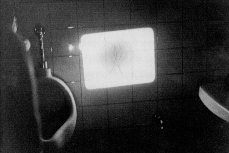 With his film, Sugar Daddies, Scheugl leaves the cinema and projects the film in a place similar to the location of the filming: the film material consists of drawings on the bathroom walls at the University of Vienna. This film was shown in the bathroom at the Künstlerhaus during a meeting in Munich. (Birgit Hein, 1971)