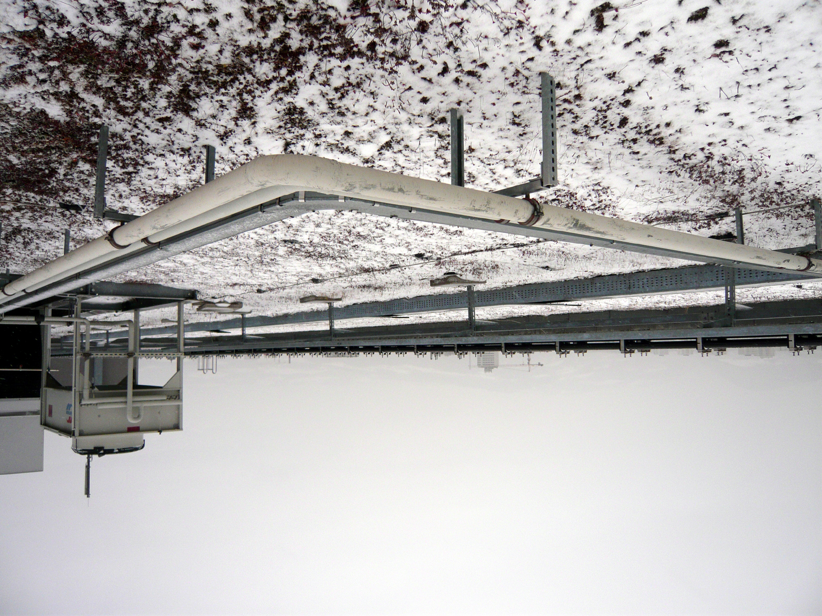 The reversal of established perspectives is a specialty of Norwegian artist Inger Lise Hansen. In Parallax she tips the camera, in the same way as her 2006 beach film Proximity, by 180 degrees, sending it on a journey through a spooky landscape where Heaven and Earth seemed to have switched places. Linz´s OK Centrum für Gegenwartskunst commissioned Hansen, its artist in residence, who shot Parallax at in February 2009. A series of tracking shots across the broad, empty flat roof of a department store in Linz, past the open industrial architecture there, past mysterious shafts and passageways, metal frameworks and extended systems of piping. This movement is an illusion, just like the elimination of gravity: All eight tracking shots, which constitute the visual portion of this four-and-a-half-minute work, were filmed as single images, using the technique of stop motion as in animation films.