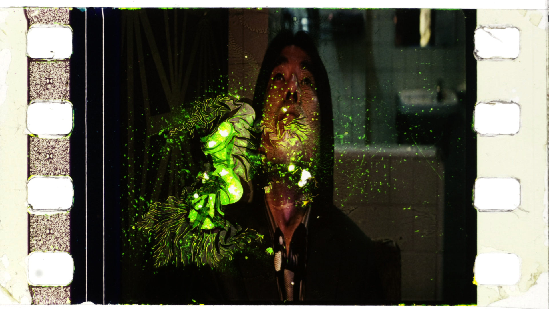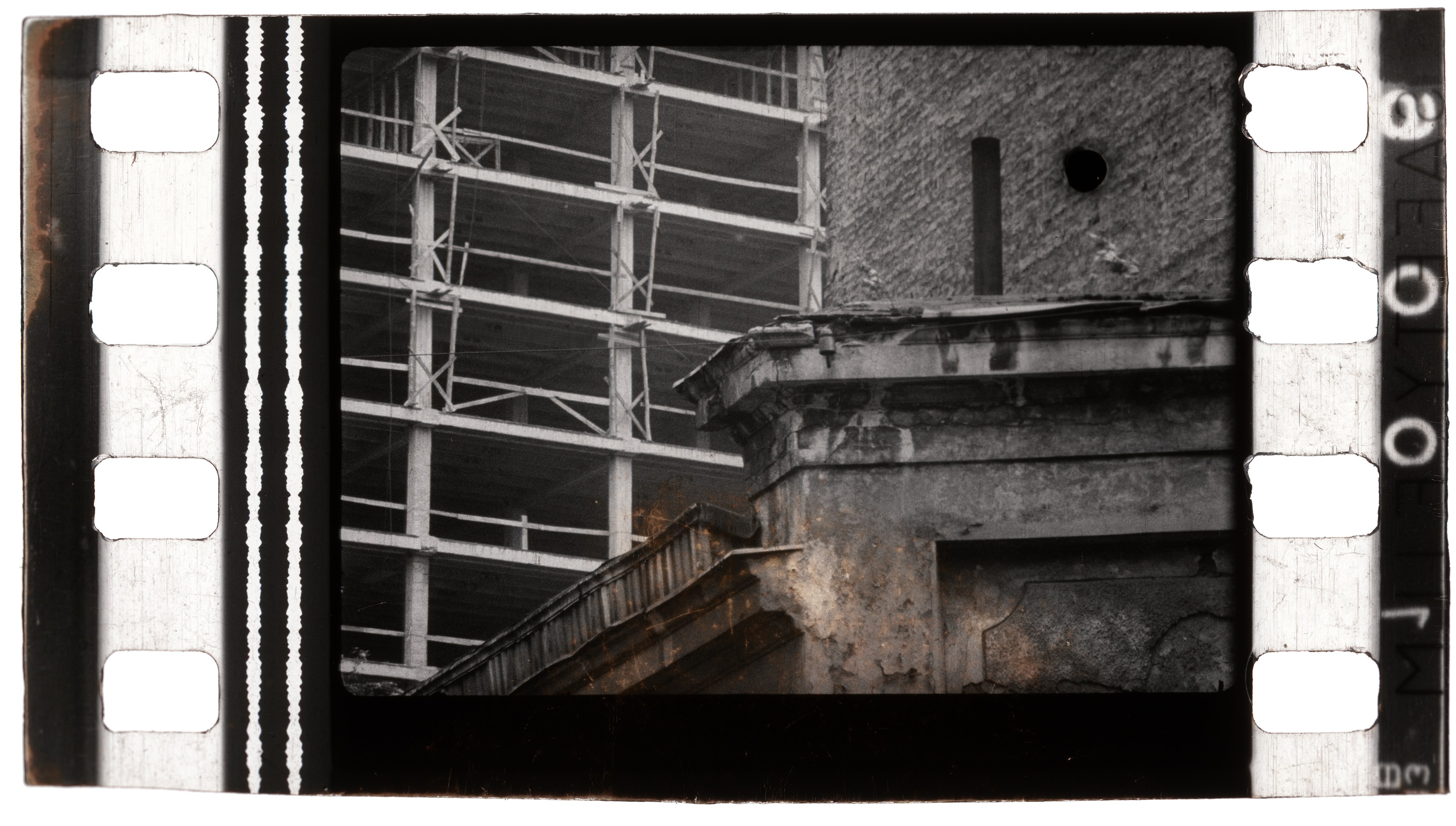 I collected more than 3000 single frames from numerous feature films in projection booths of several Viennese cinemas, which were cut off. Then he restructured them to a racy image-sound-staccato.