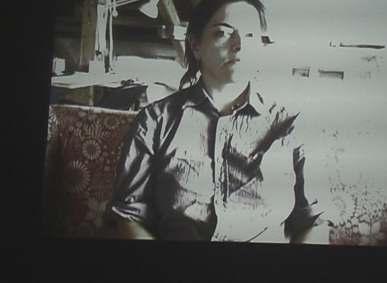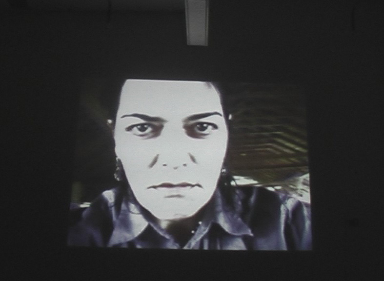 At first, all that is visible is the image of a woman´s torso, overexposed; on the sound track a rustle, crash, and voices. Ultimately, the picture of a woman - the artist herself - takes shape, a voice begins, but the woman does not move her lips, gazing steadfastly into the camera. This situation does not change over the course of the video, whereas the spatial setting (a couch in a loft) is steadily manipulated: the couch, as though animated by a ghost, moves back and forth in the room. The border between the real and cinematic spaces stretches, and in the end, dissolves.