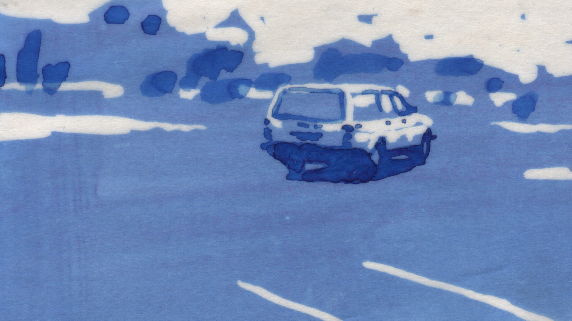 Ink Eraser abstracts a collage from rituals and banalities that define every television crime show, as such, and compiles, quasi literally, a type of blueprint of the genre: ink rather than blood flows through the images. In tedious, finely detailed work, Schubert processed 3,000 individual images with ink and eraser pen. This technique rests on the progression of saturation and emptiness, of blue color that is made visible and invisible, which then appears as white. Tension and intensity thus become immediately visible in icy dark blue images that at some point freeze the blood of their viewers to ice.