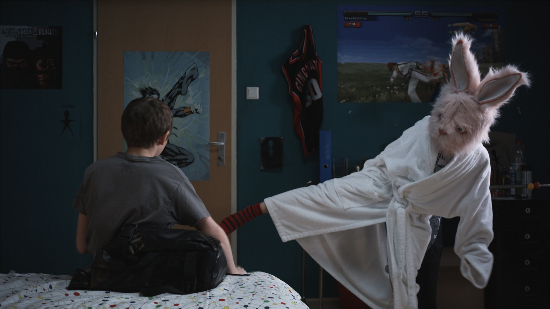 An excerpt from the synopsis: "To prevent the loss of his best friend, Chris, to the cool and aloof Henk, 14-year-old Johnny tries to impress him with off-beat cell-phone videos. But at some point even the absurd comedy of the rabbit costume worn by his little brother isn´t enough anymore."