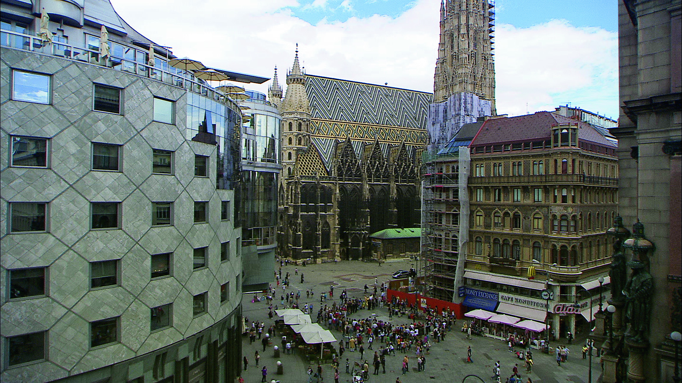 Zunächst ein stiller Schwenk über Wien, das Museumsquartier, Prunkbauten aus verschiedenen Epochen, vertraute historische Umgebung. Nach und nach erst dringen die Alltagsgeräusche ins Bewusstsein und machen klar, dass mit diesen Bildern die Gegenwart angesprochen ist.