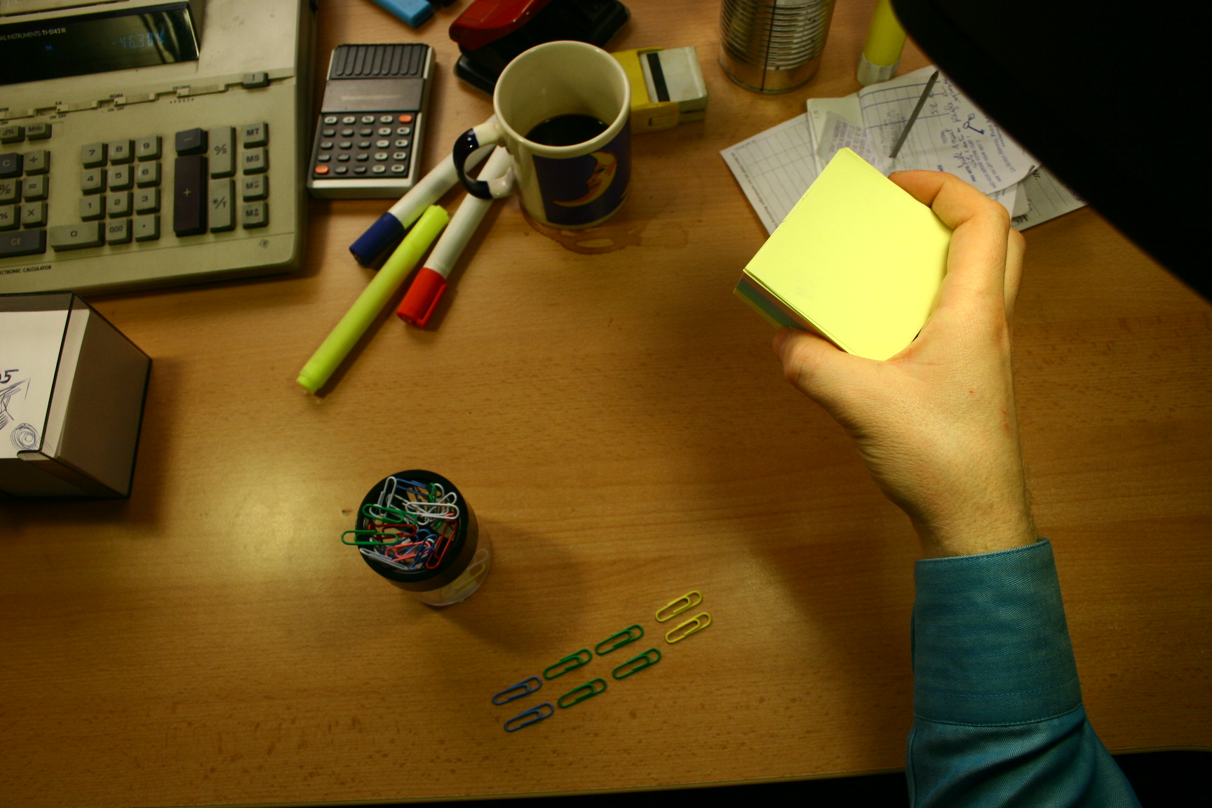 In a manner that fits the appropriation philosophy of Laokoongruppe´s do-it-yourself video perfectly, Popovic chose as the setting a desk with paperclips, a coffee cup, Post-its, markers, toy figurines and a cash register, with the song´s lyrics scrolling across the scene. This modest, doll-size stage is occasionally rearranged by the director´s arm, and the resulting animation video comprises about 5000 individual shots taken with a digital camera in stop motion.